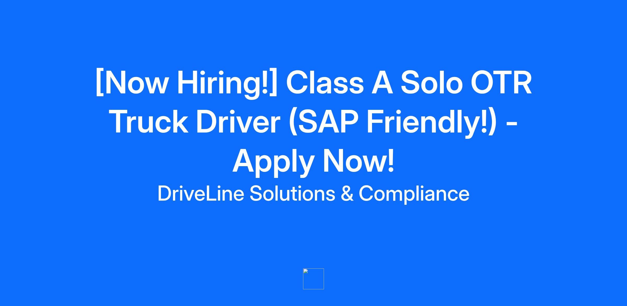 [Now Hiring!] Class A Solo OTR Truck Driver (SAP Friendly!) - Apply Now!