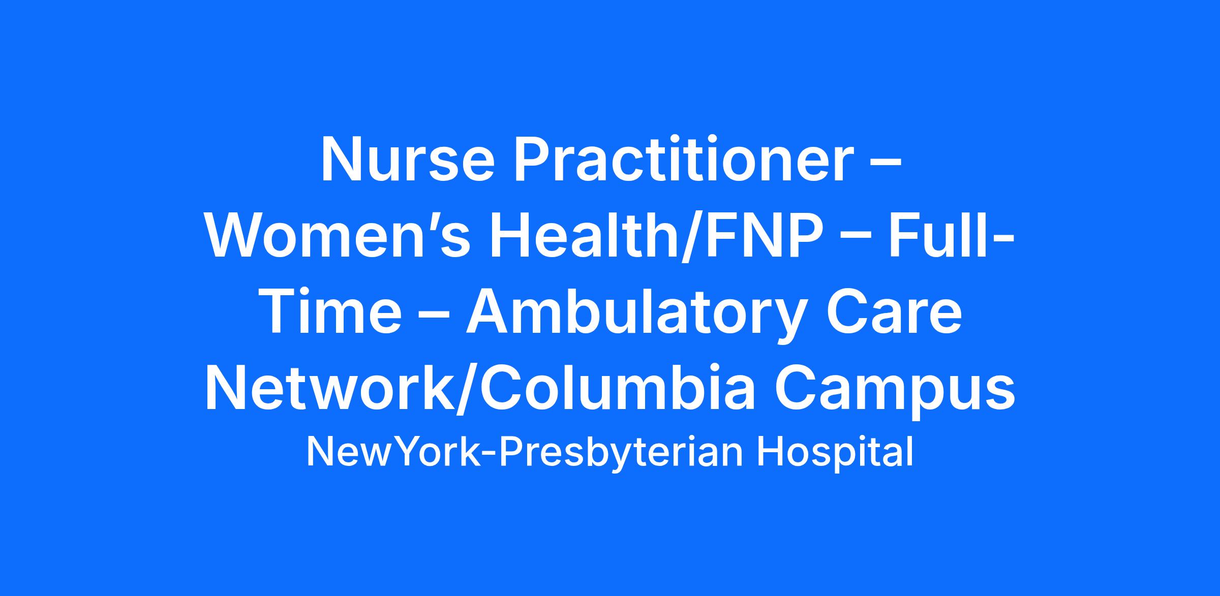 Nurse Practitioner – Women’s Health/FNP – Full-Time – Ambulatory Care Network/Columbia Campus