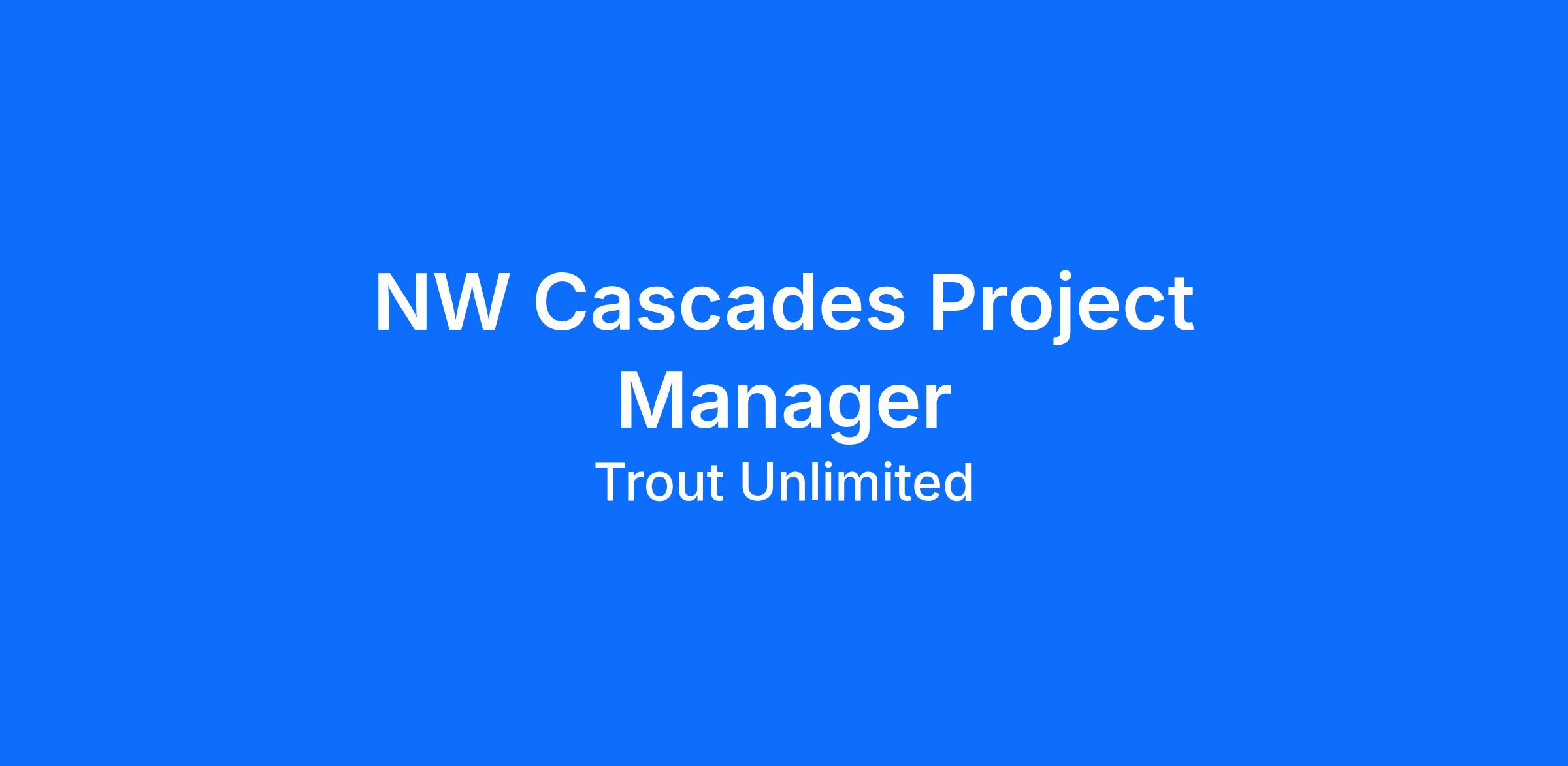 This exciting new position will primarily support the NW Cascades Program (70% time) but will also be asked to assist other Western WA TU Programs, particularly the Chehalis Restoration Program, as needed (approx. 30% time). Chehalis Program support duties and project types will be similar where there are currently 9 restoration projects underway.
