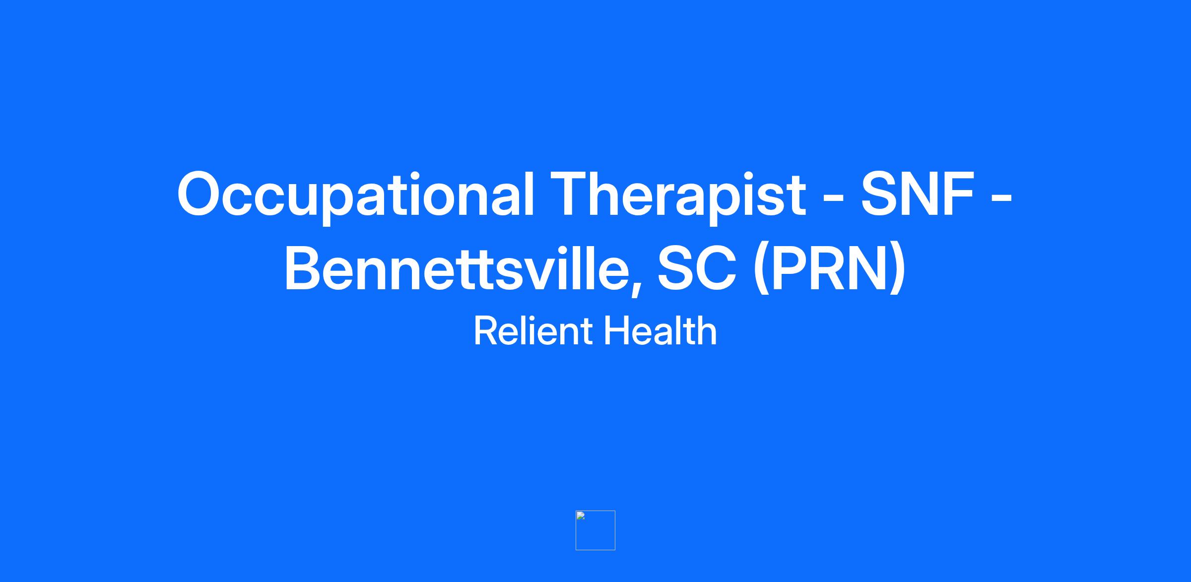 Seeking a full-time Occupational Therapist (OT) in Bennettsville, SC. Skilled Nursing Facility (SNF) setting, great pay, full benefits, supportive team. New grads welcome!
