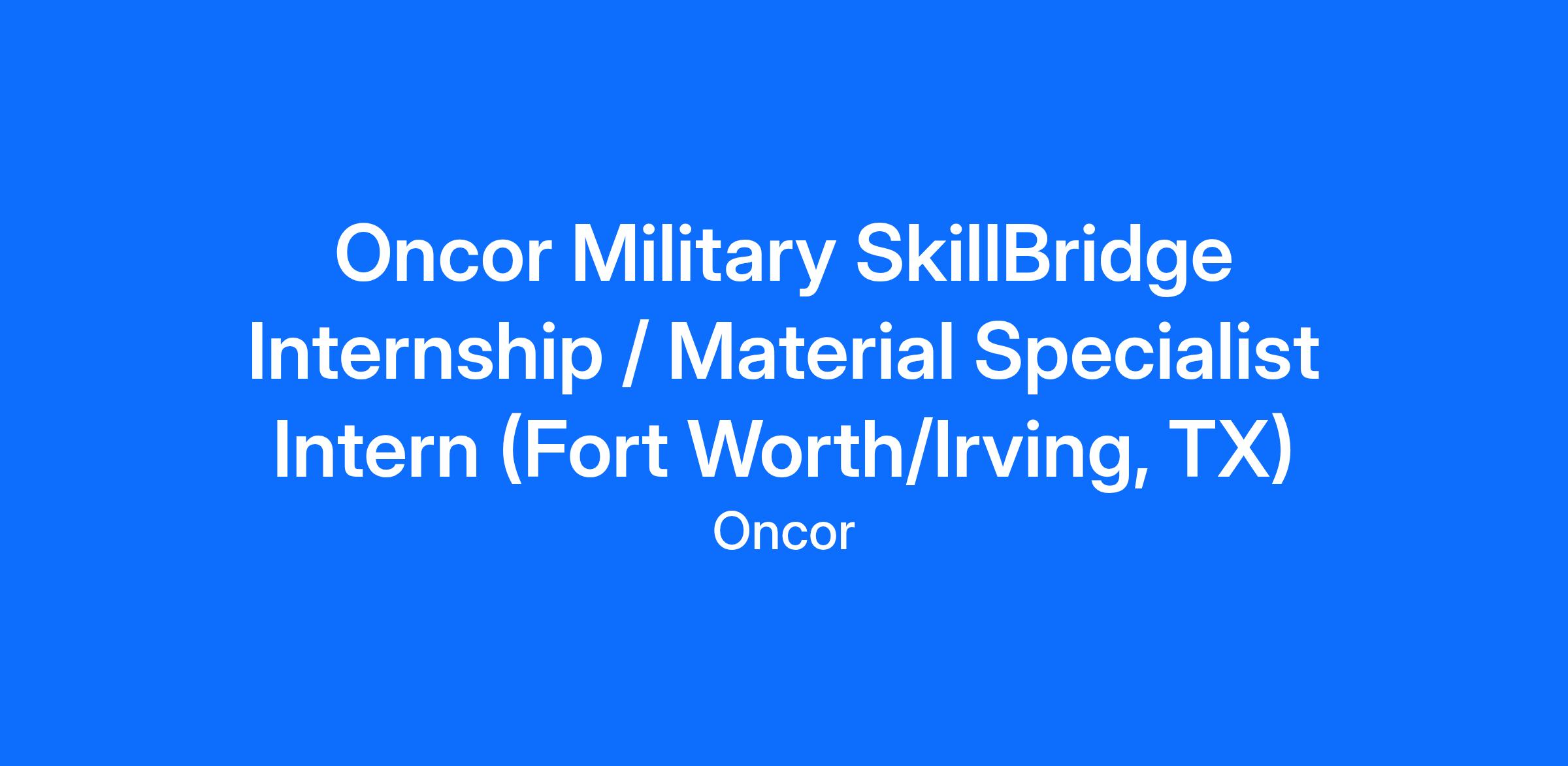 Oncor proudly recruits veterans of the U.S. Armed Forces. From distribution and transmission operations personnel to technology and other support functions, the knowledge, expertise, and selfless teamwork of veterans prove valuable to our operations that keep the lights on for more than 13 million Texans. Oncor is proud to partner with the Military Department of Defense (DoD) SkillBridge program and offer a diverse selection of challenging, rewarding INTERNSHIPS that are vital to our operations and make a real difference in the communities we serve. Interns will obtain real-world training, work experience, and electric utility industry knowledge in multiple functional areas within our organization.