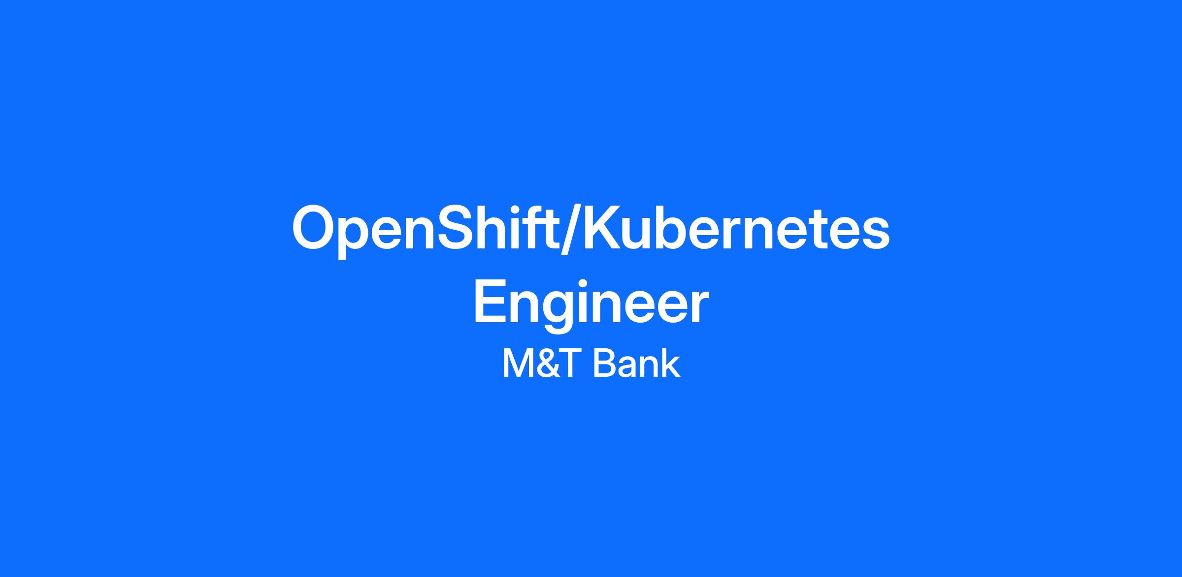 M&T Bank is seeking an experienced OpenShift/Kubernetes Engineer to join a team managing and maintaining the bank’s container platform. This person should bring expert knowledge of the OpenShift/Kubernetes platform and best practices for cluster deployments to the team. A large part of this role will be playing with the latest and greatest technologies and making recommendations on how to take advantage of them. An ideal candidate should have excellent technical credentials, experience in containers, networking, storage, computer, cloud infrastructure design and implementation, and excellent communication skills.
