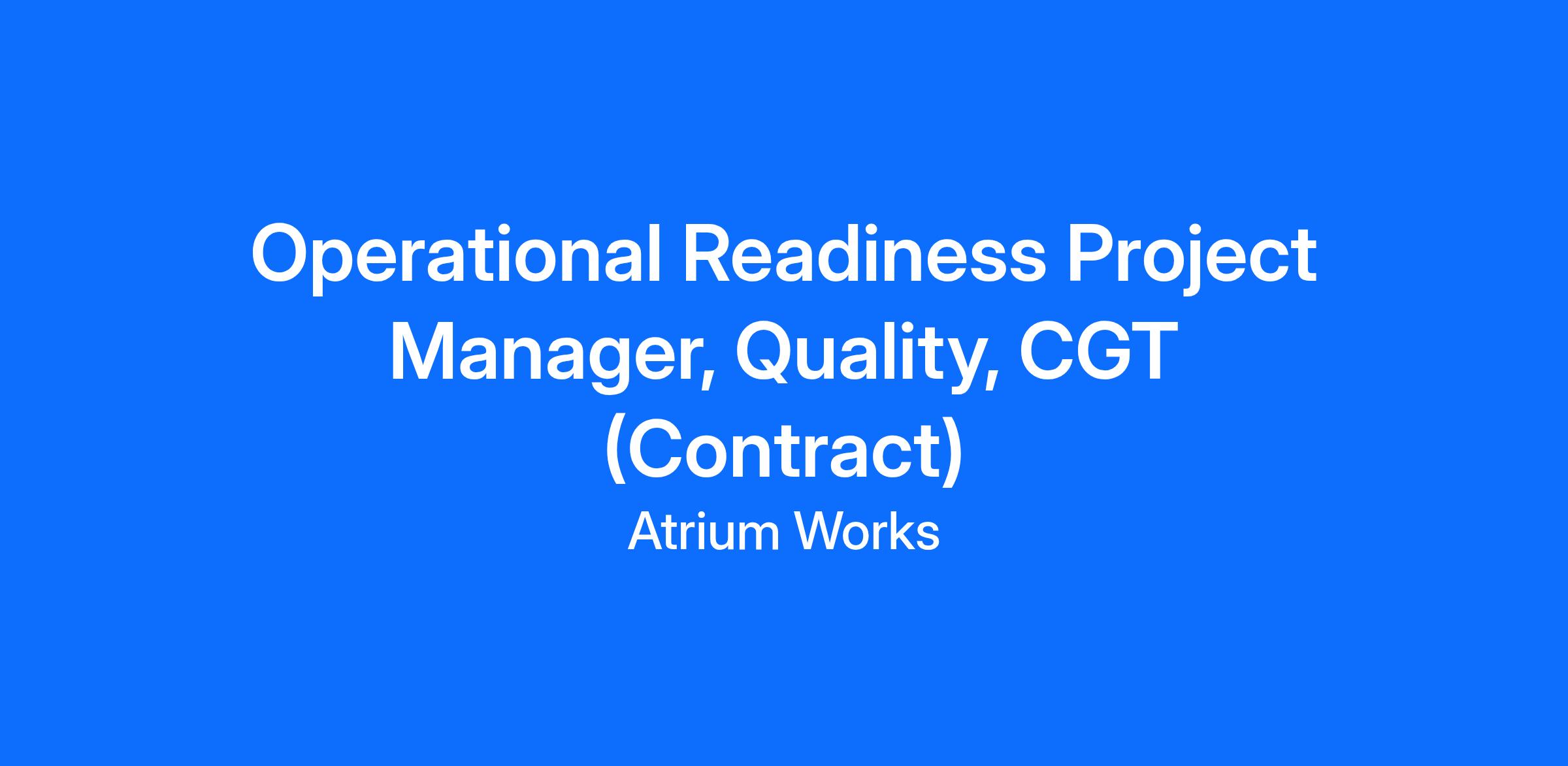 The Cell and Gene Therapy Quality organization is seeking an Operational Readiness Project Manager to support operational readiness governance and site Quality continuous improvement initiatives. This role will be split approximately 50/50 between Operational Readiness and Continuous Improvement project execution.
