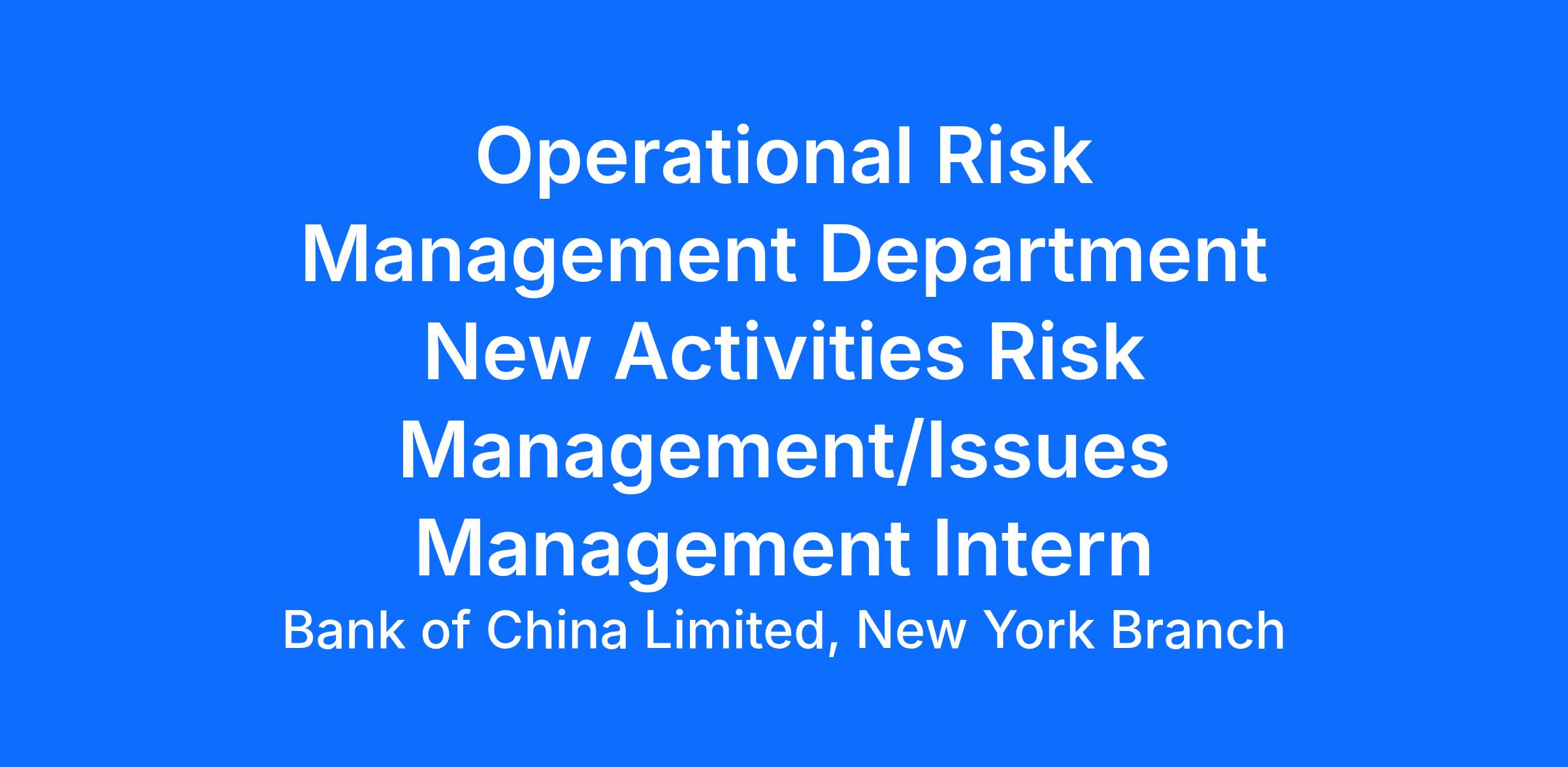 The new intern will assist with the daily BAU work and ensure product ongoing risk management monitoring is executed based on internal policy and procedure.