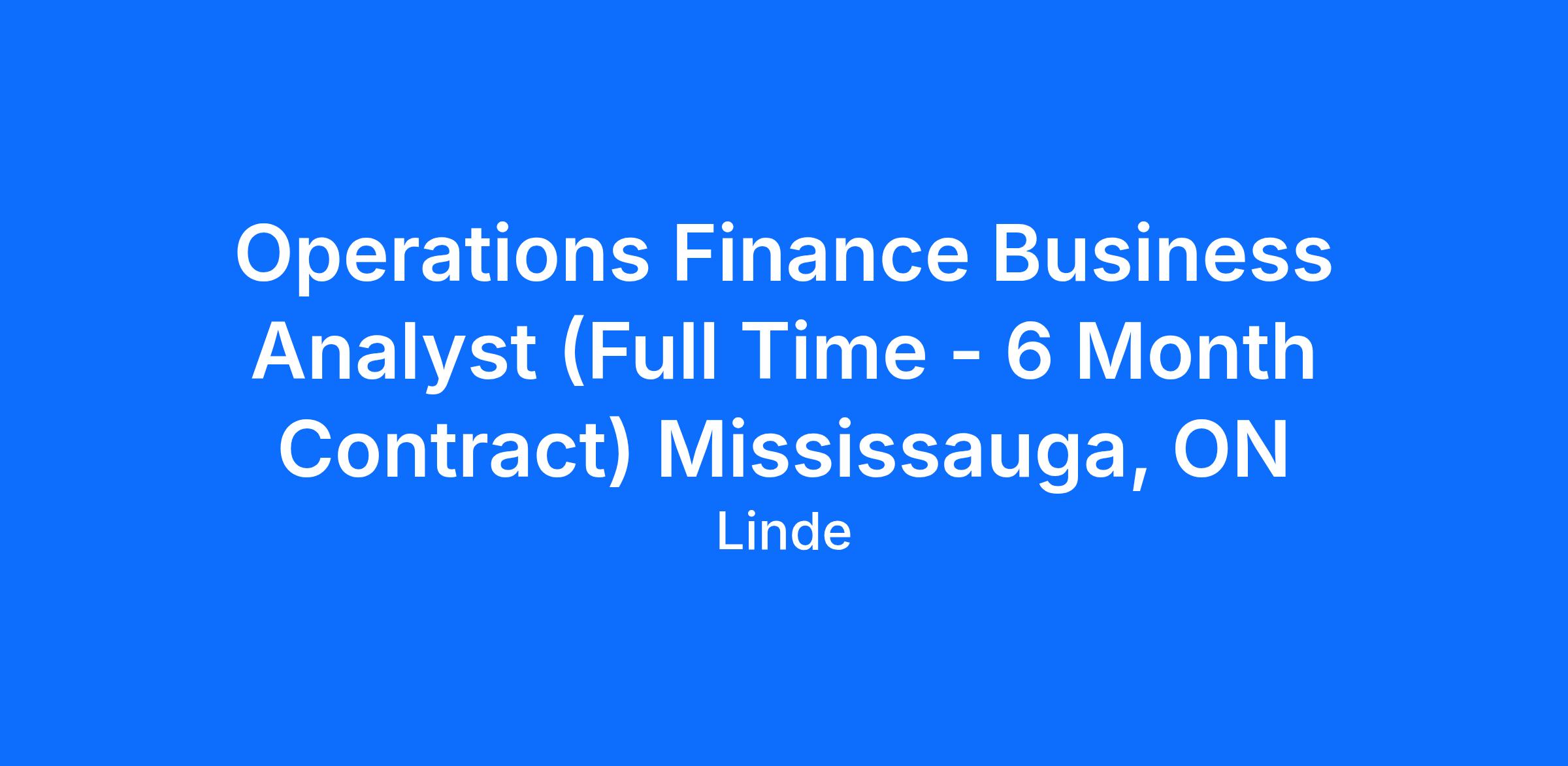 Operations Finance Business Analyst (Full Time - 6 Month Contract) Mississauga, ON