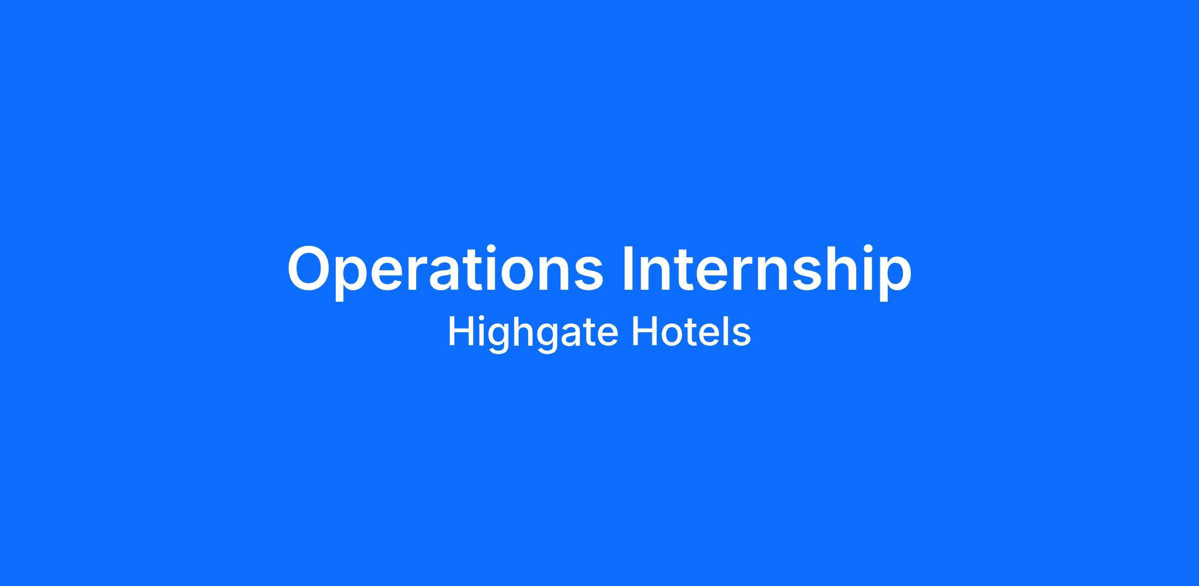 Come join Highgate for the summer in one of our dynamic internships! Our interns have the opportunity to work in multiple departments such as HR, Operations, Revenue, Marketing, and F&B. You will learn about the hospitality industry while working in a fun and fast - paced environment. Submit your resume today for consideration! Specific hotel placement will be discussed upon submission of an internship offer.