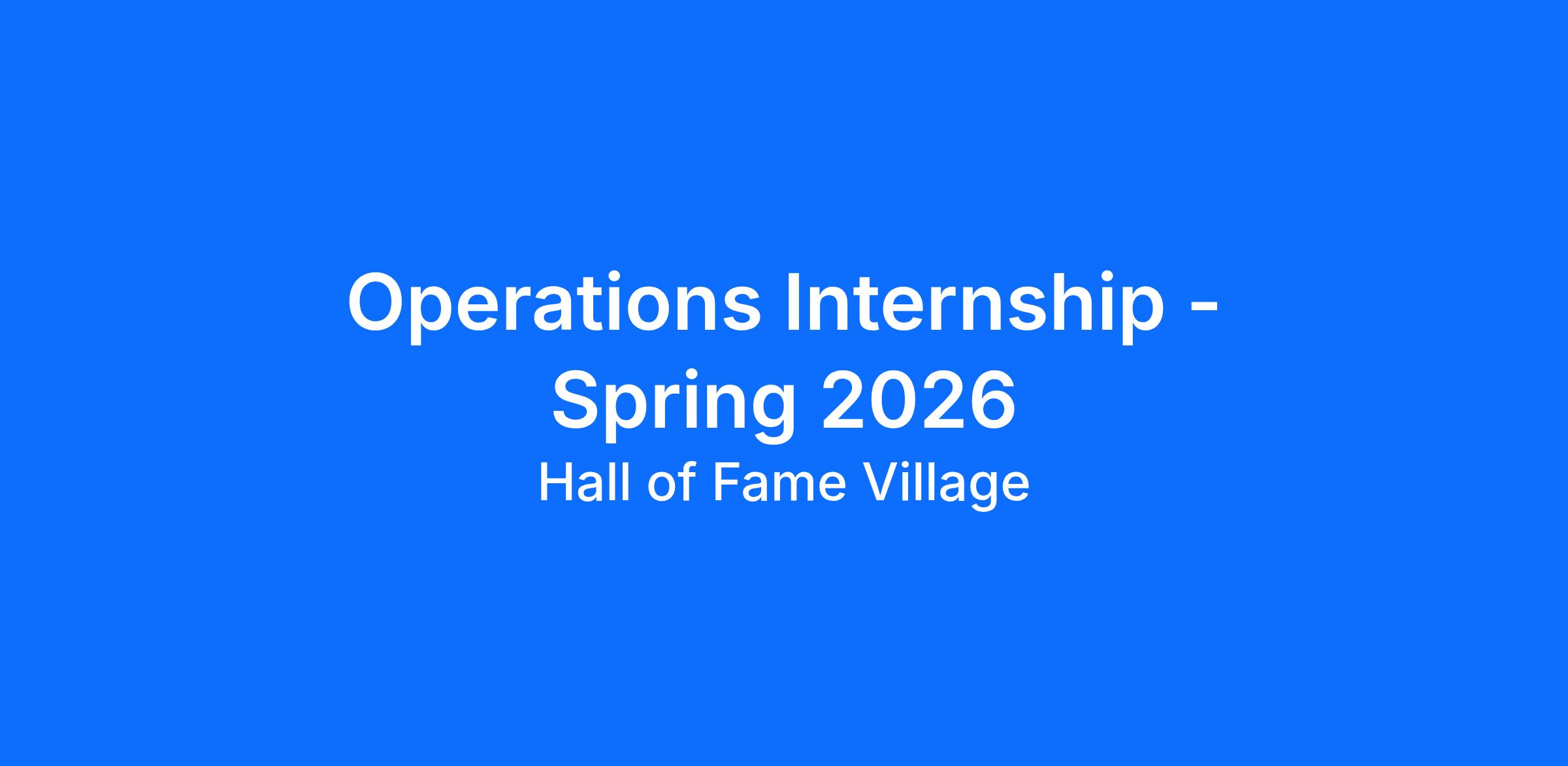 The Operations Intern will be responsible for day-to-day operational support at the Hall of Fame Village, a subsidiary of the publicly traded Hall of Fame Resort & Entertainment Company (NASDAQ: HOFV, HOFVW). This position has the opportunity to work with various departments including events, sports, maintenance, ride operation, and stadium operations.