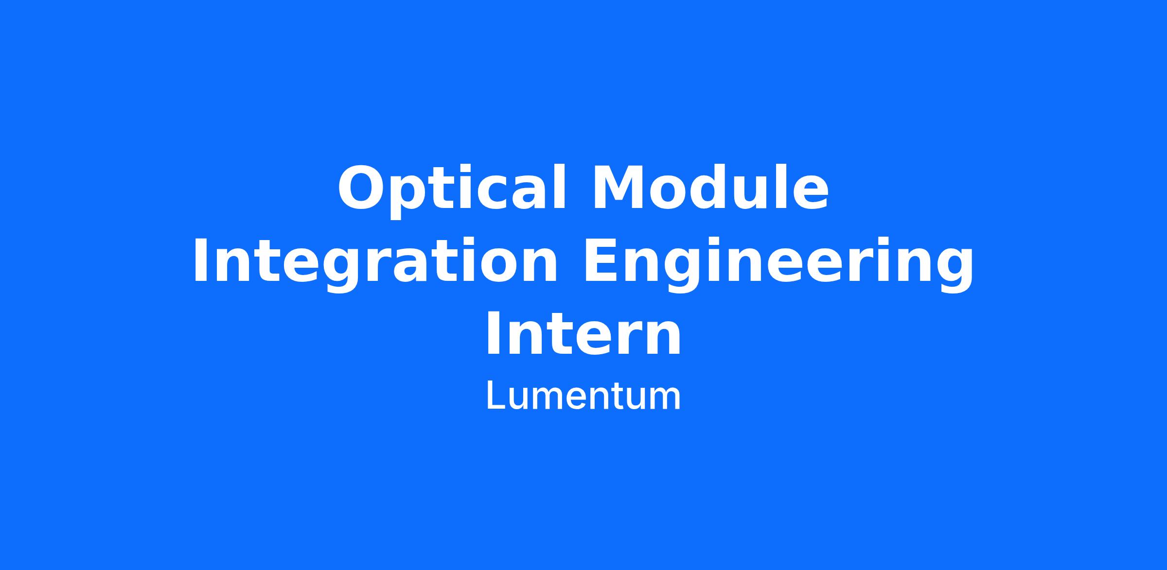Optical Module Integration Engineering Intern (Summer 2026)