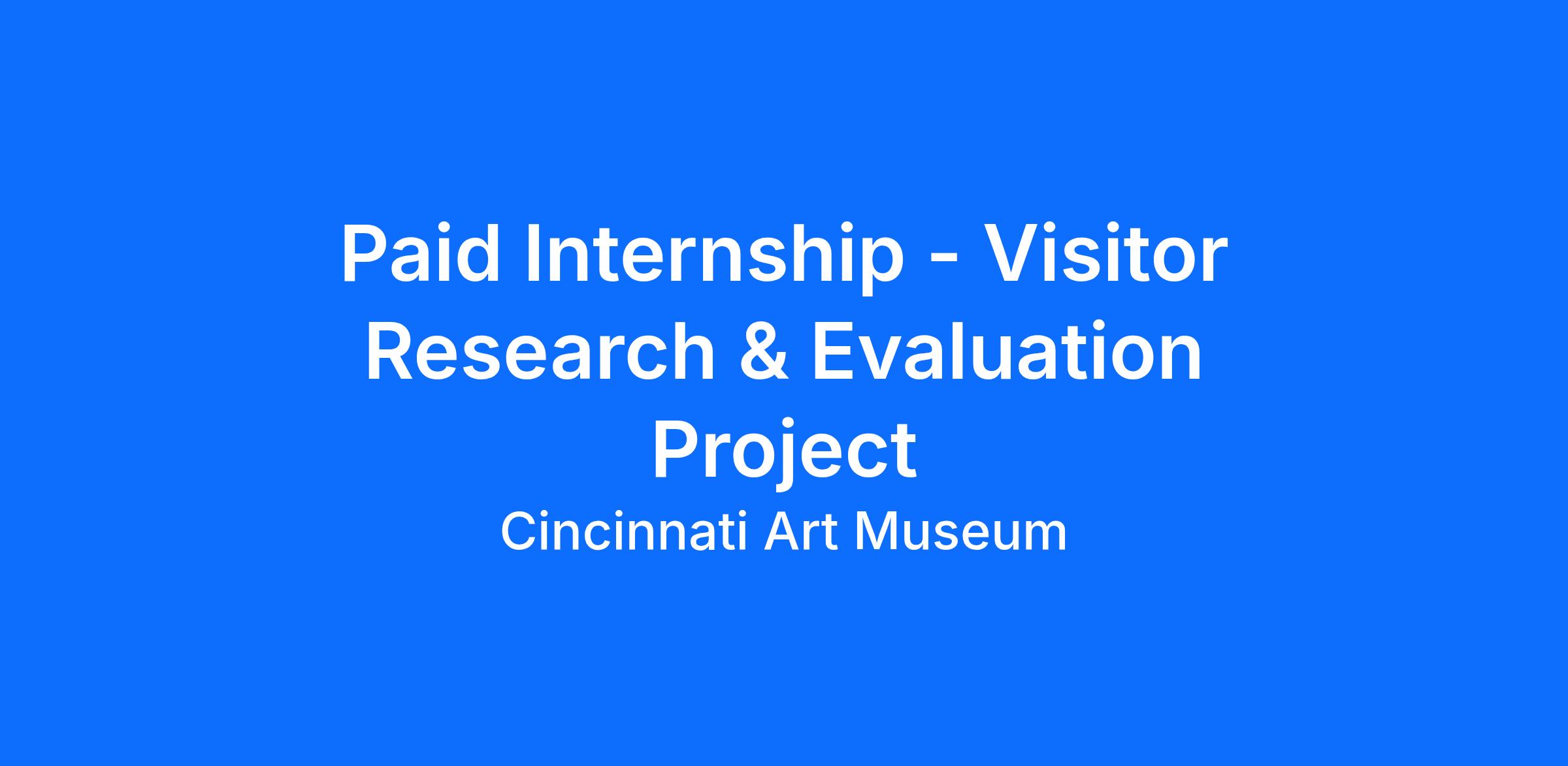 The Cincinnati Art Museum has an opening for a Visitor Research and Evaluation Project Intern. This internship position will contribute to multiple ongoing mission-driven projects, supporting visitor experience, audience research and evaluation, and strategic planning efforts. The intern’s time will be split between supporting visitor experience data collection and assisting with collaborative research projects with teams across the museum. Research projects will focus on supporting the strategic plan through listening to diverse multivocality and taking deeper dives into visitor interests and motivations. The intern will also support research related to the Art Bridges COVES cohort, which will include social connection and wellness outcomes that support our work with the new strategic plan.
