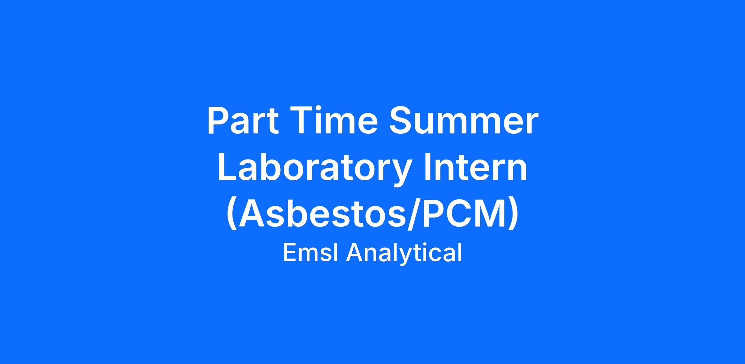 EMSL is currently seeking a Part Time Summer Laboratory Intern (Asbestos/PCM) in Carle Place, NY location. This role will support the asbestos team by performing sample preparation.