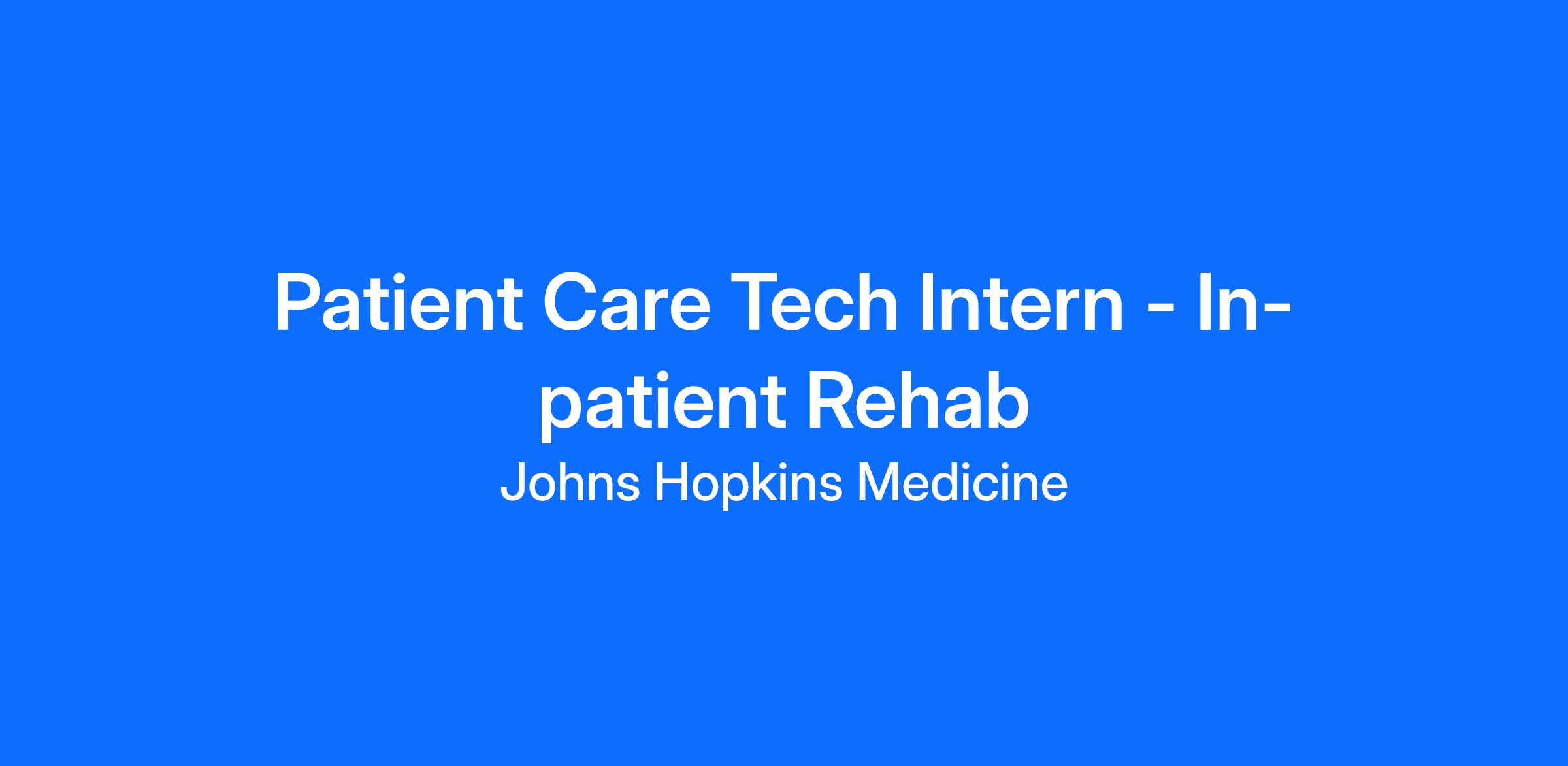 Patient Care Tech Intern – In-patient Rehab
