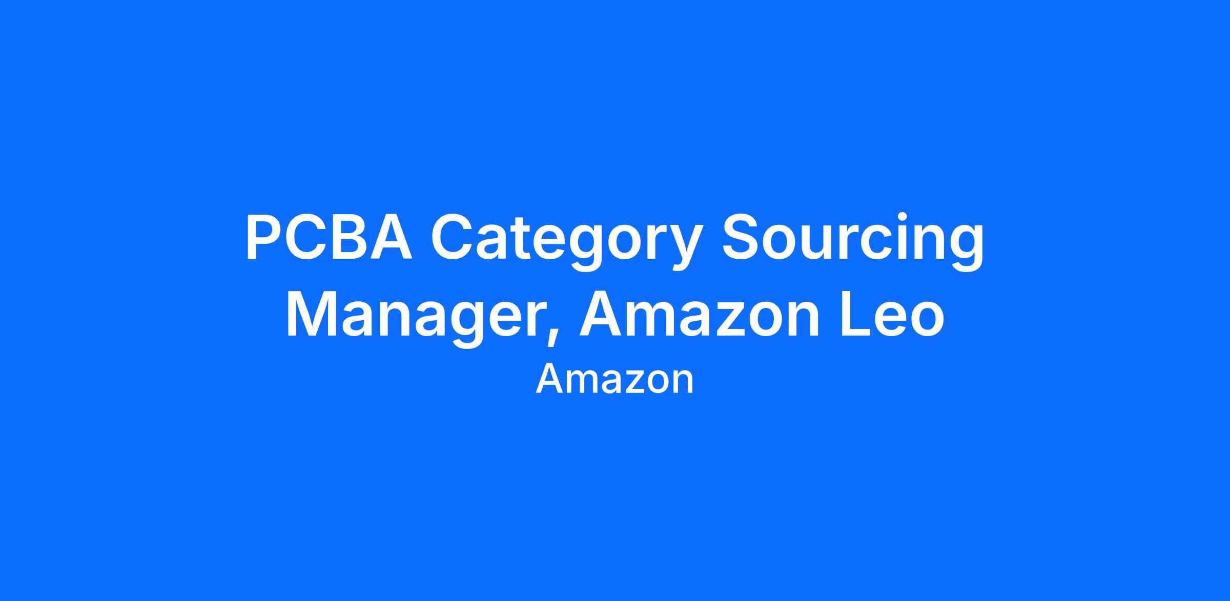The Leo Electronic Supply Chain team is looking for a Global Category Sourcing Manager to support business and engineering stakeholders in selecting, developing and managing business relationships with critical Printed Circuit Board Assembly suppliers and PCBA Component suppliers as needed to execute on Amazon Leo objectives.