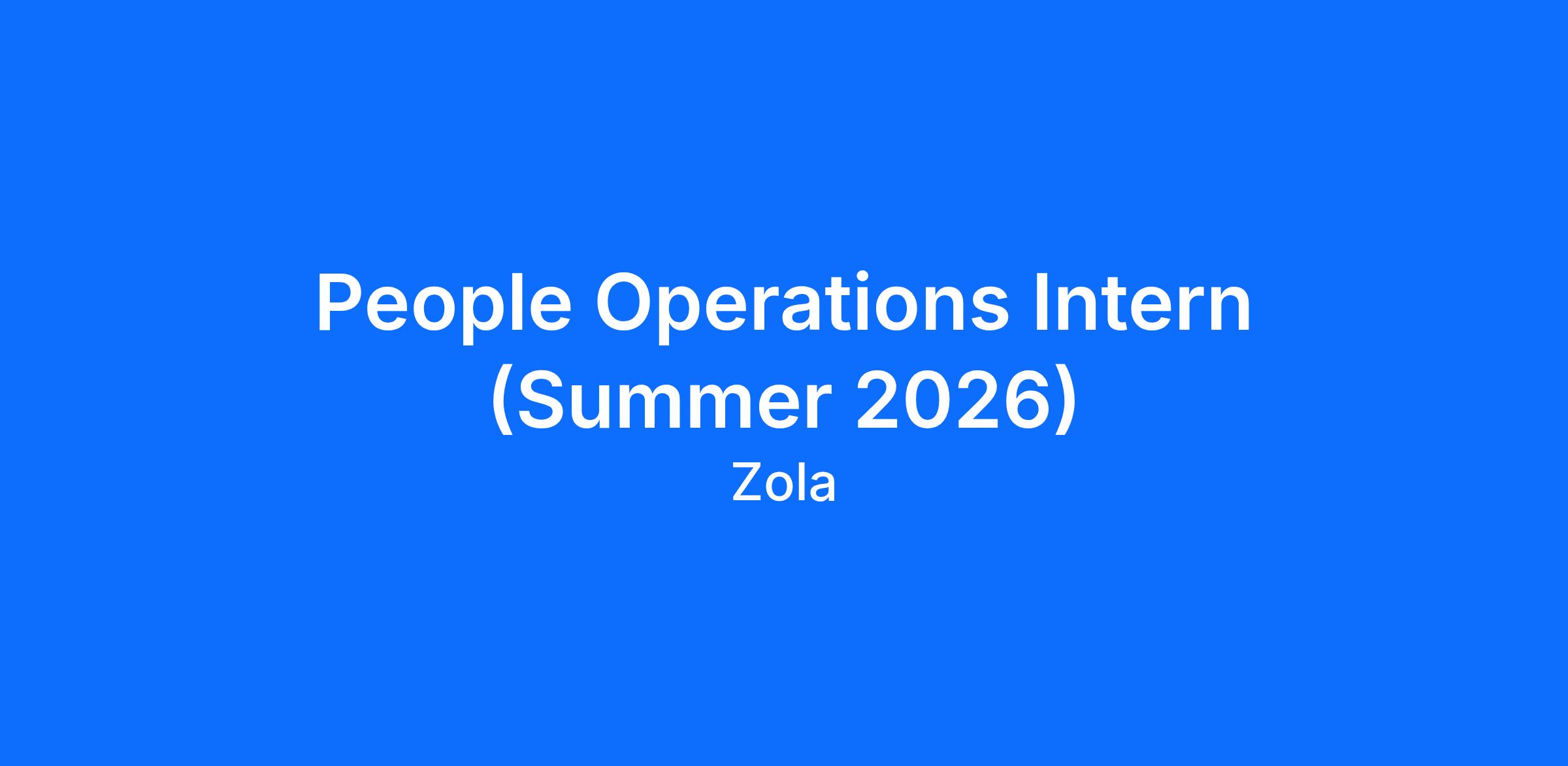 Here at Zola we are seeking a motivated People Operations Intern for Summer 2026. In this role, you will support our People Operations and contribute to building a meaningful experience for our team. The ideal candidate is a proactive individual who is curious about the modern workplace and can manage multiple priorities in a fast-paced environment. Join a team that is hardworking, collaborative, and energetic!
