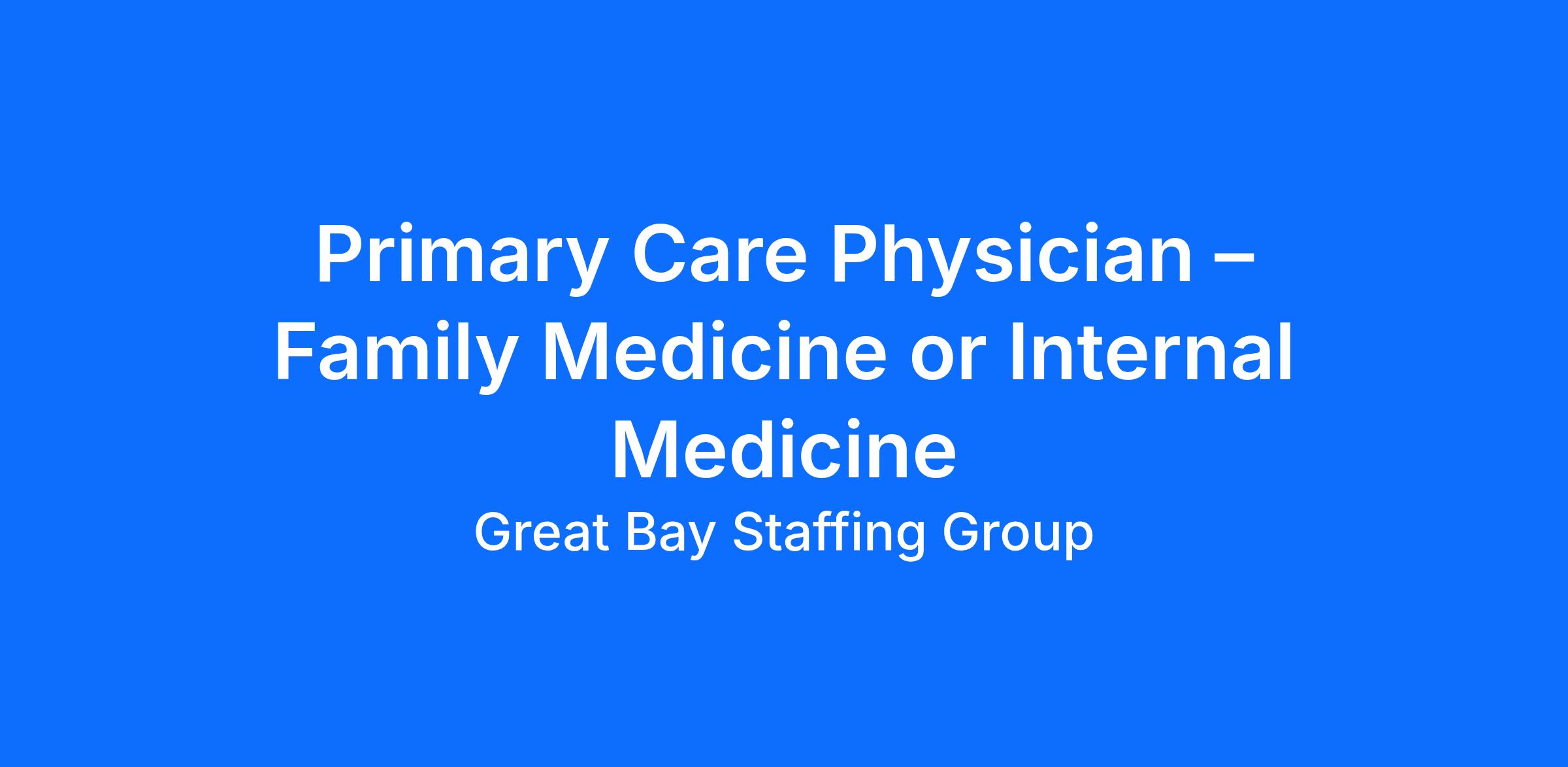 Primary Care Physician – Family Medicine or Internal Medicine