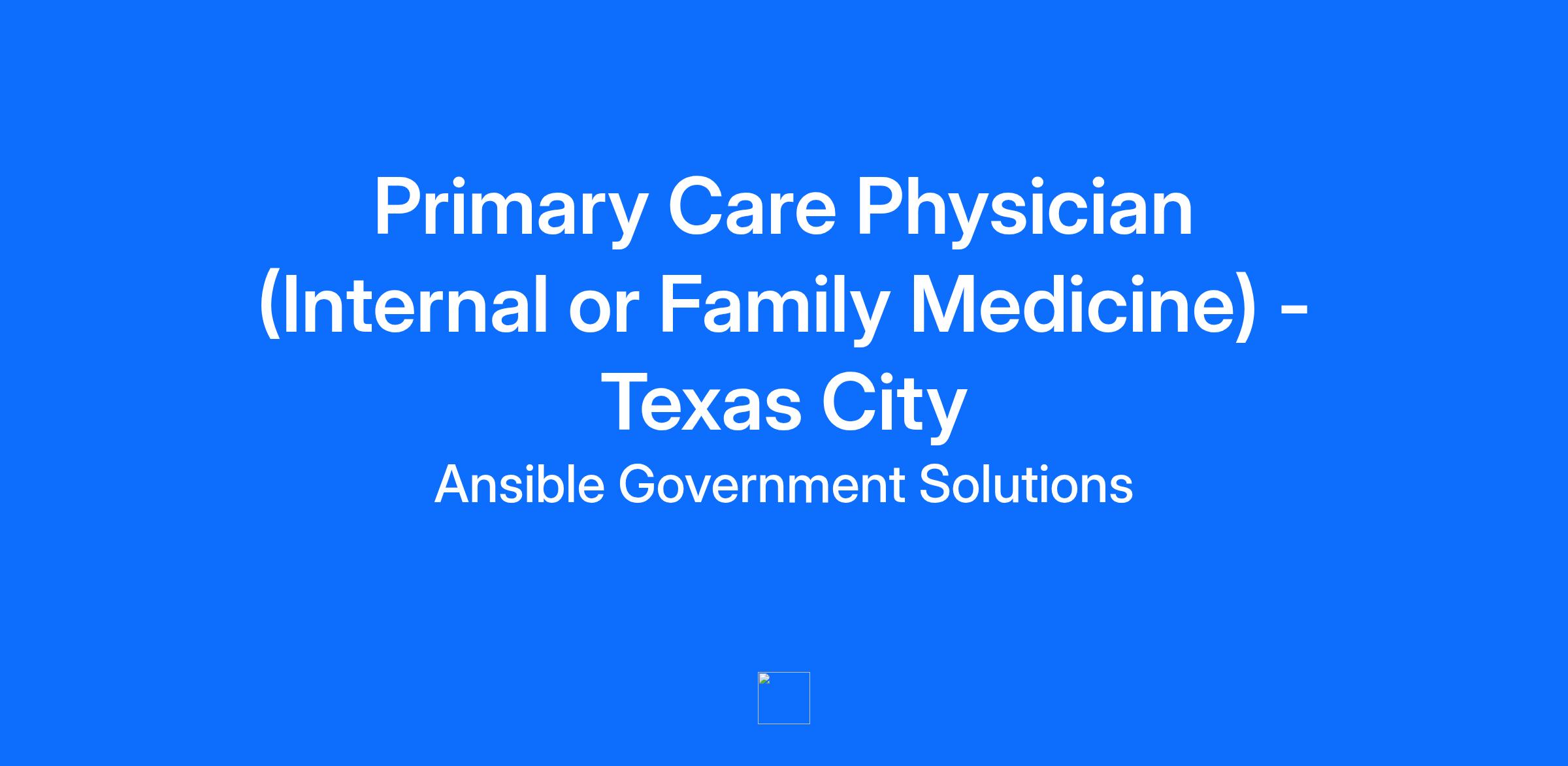 Ansible Government Solutions, LLC (Ansible) is currently recruiting for a Primary Care Physician to provide onsite services to eligible beneficiaries of the Texas City VA Clinic located at9300 Emmett F Lowry Expy, Texas City, TX 77591. Shift scheduling is generally Mon-Fri, 8:00am - 4:30pm with no call or holidays. The Physician may be requested to work up to four (4) Saturdays per year. Full-time and Locum Tenens positions with generous compensation packages are available.