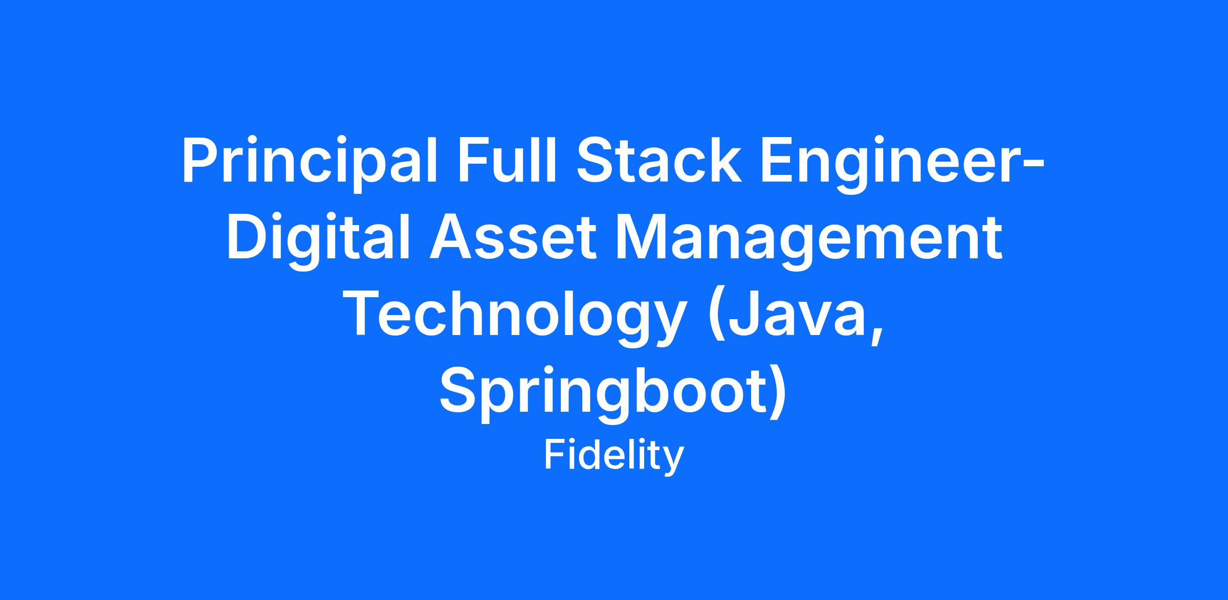 Principal Full Stack Engineer – FDAM - Asset Management Technology