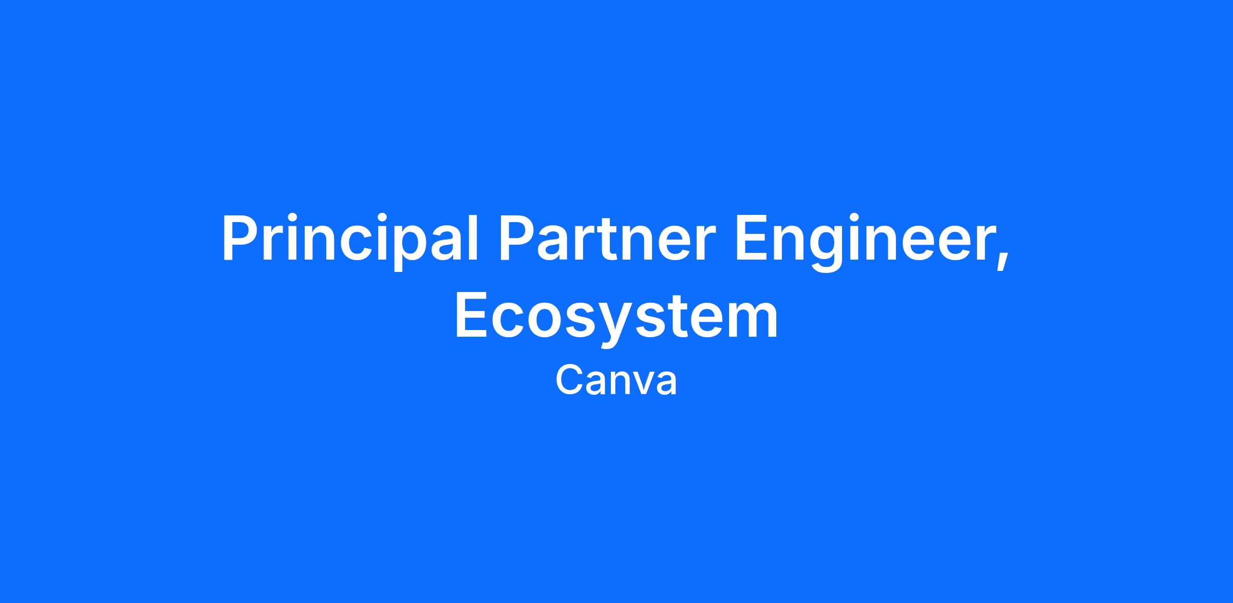 Principal Partner Engineer, Ecosystem