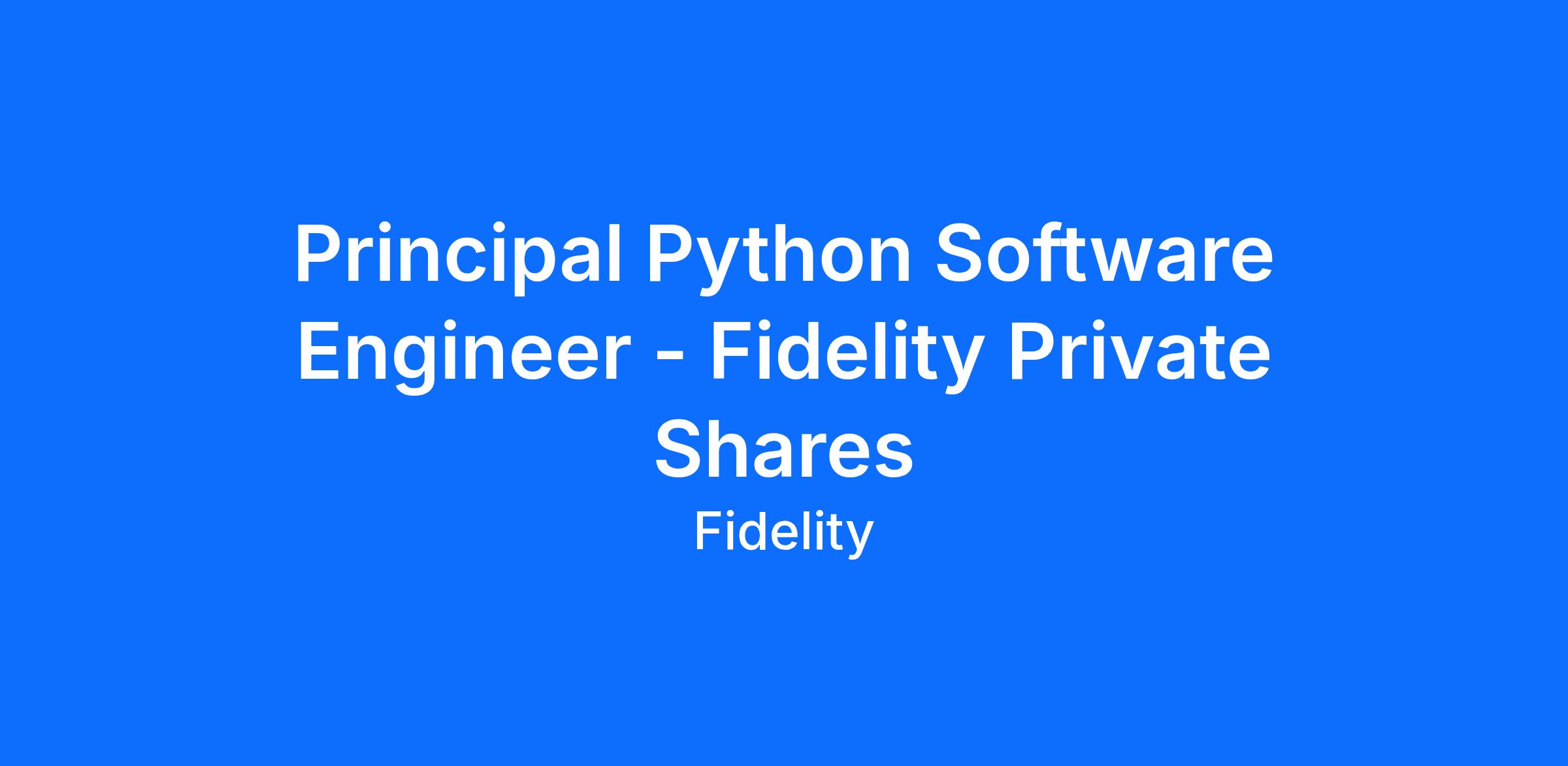 Principal Python Software Engineer - Fidelity Private Shares