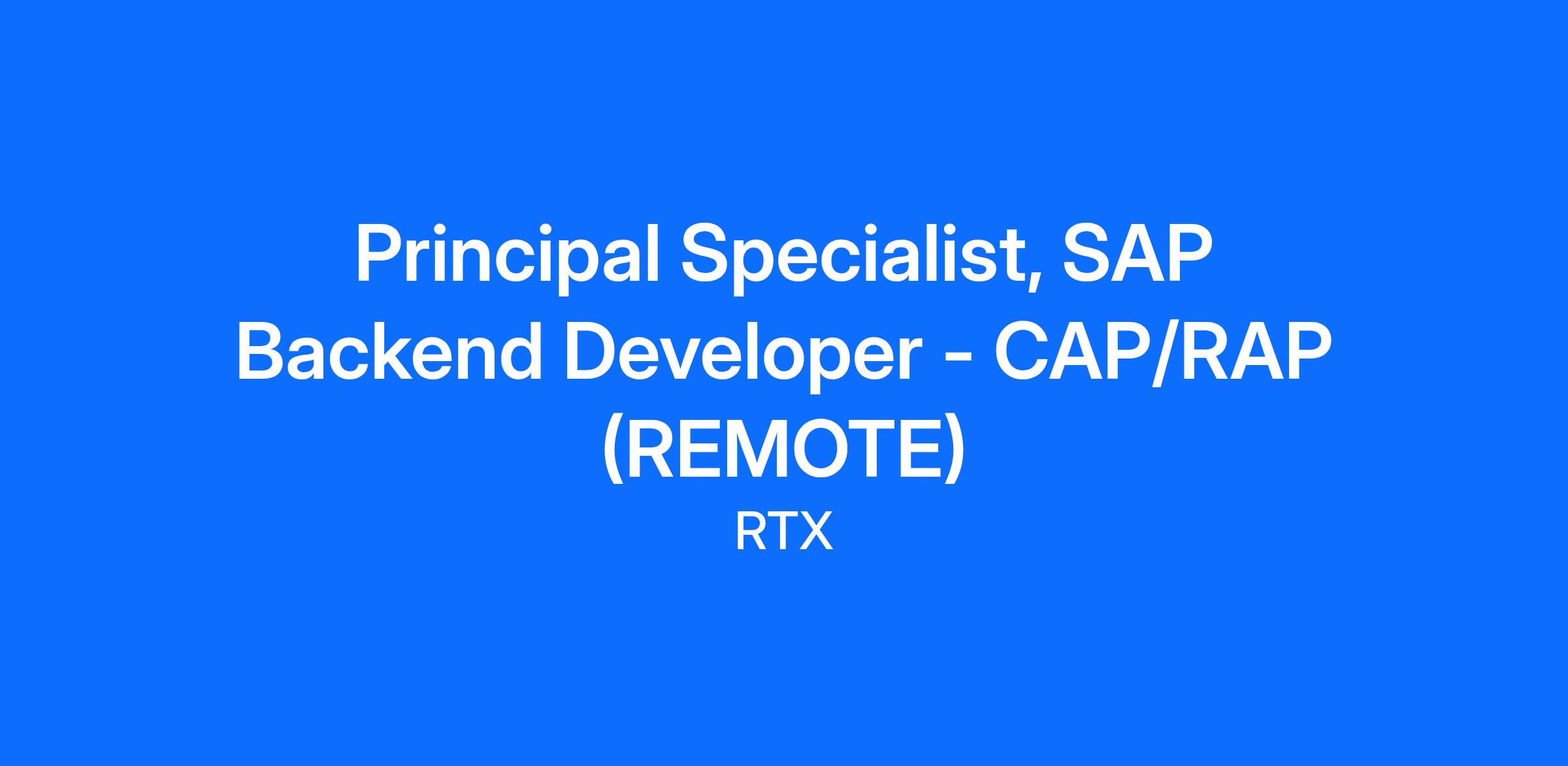 RTX has an opening for a Principal Specialist , SAP Backend Developer - CAP/RAP (Principal Specialist, Business Systems and Transformation)