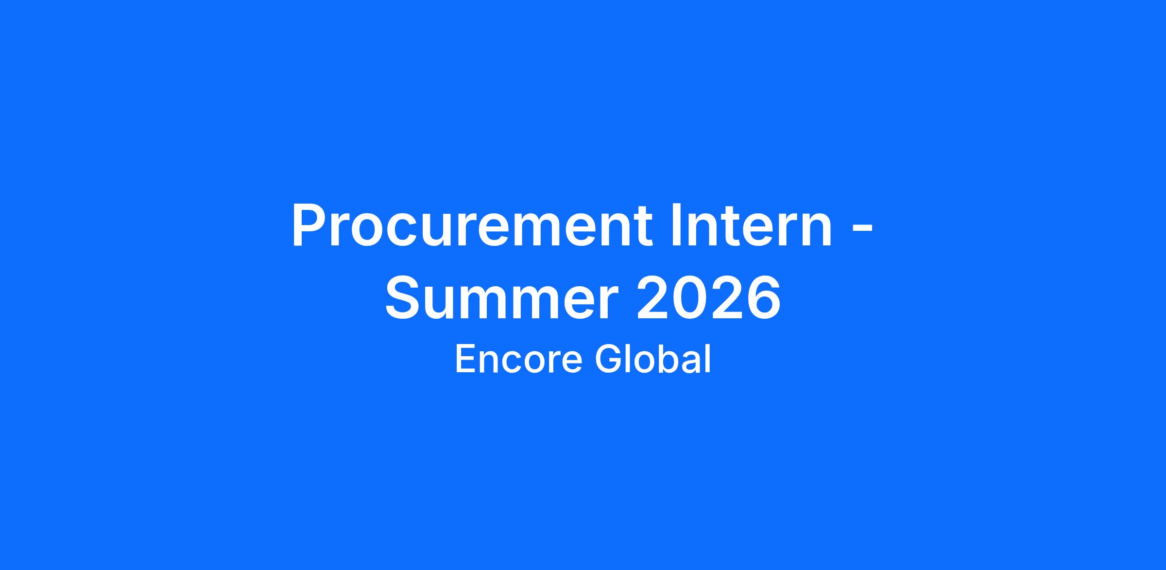 The Procurement Intern will serve as part of the Procurement team. The intern will be involved in various aspects of ENCORE’s Procurement activities including preferred supplier onboarding, pricing, document, and lead time auditing, as well as reviewing and updating Microsoft BI reporting. The role will provide an opportunity to leverage skills learned in college to execute Procurement and Supply Chain processes and data analysis.