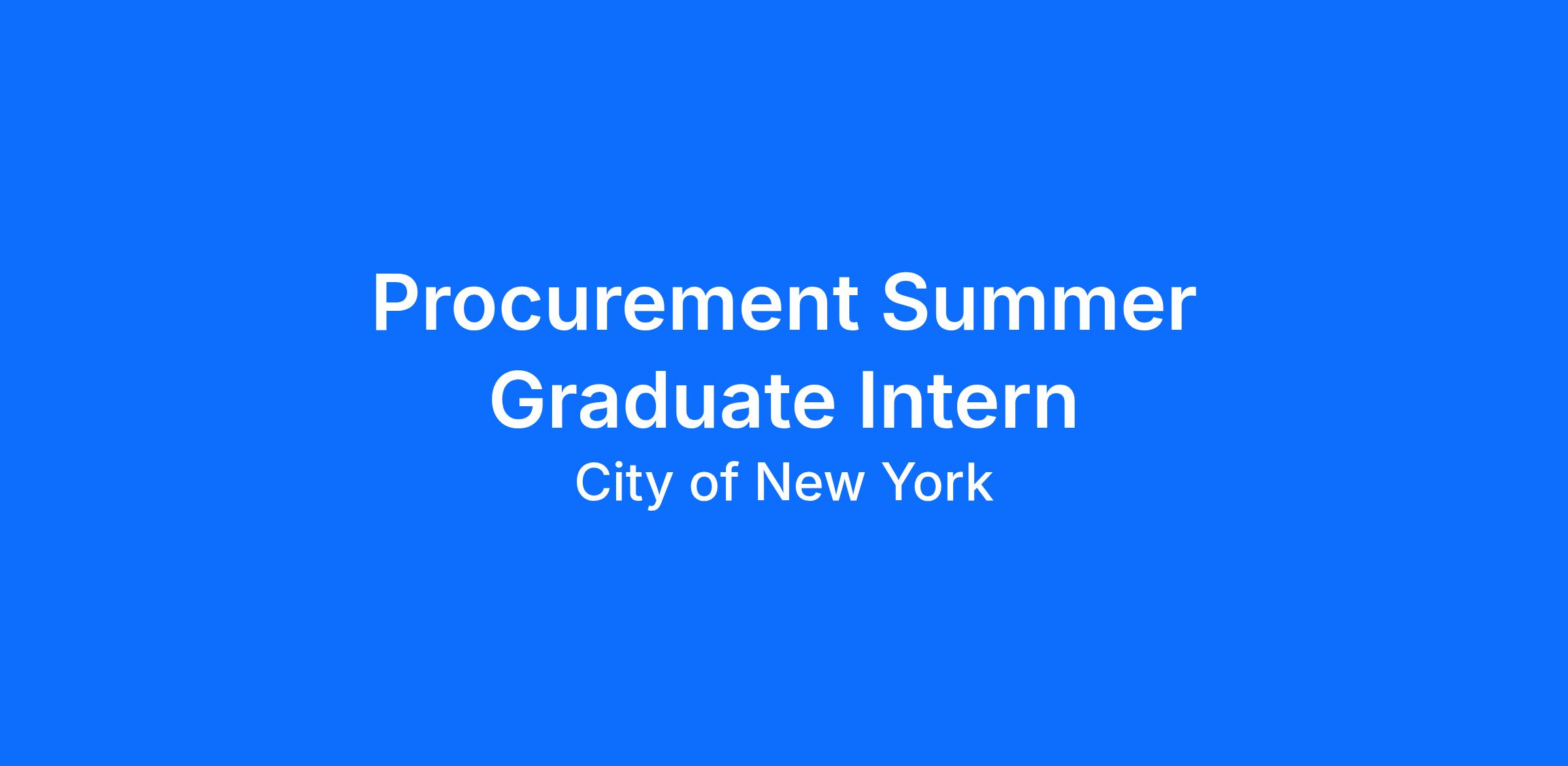 The Procurement Unit is seeking a Summer Graduate Intern. The Procurement Summer Graduate Intern will gain hands-on technical experience through task specific office work and mentoring relationships with both junior and senior-level Procurement staff. The internship will familiarize the intern with the City Procurement process.