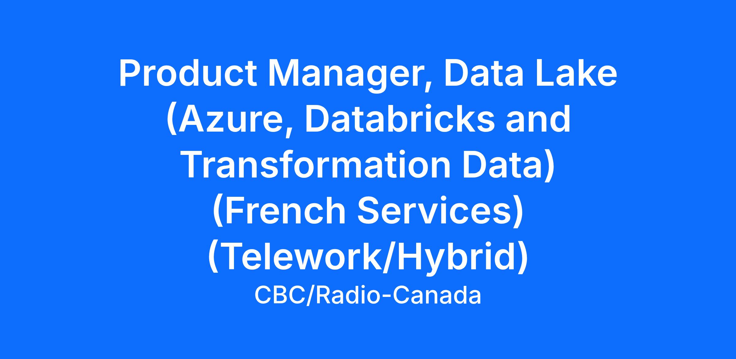 Product Manager, Data Lake (Azure, Databricks and Transformation Data) (French Services) (Telework/Hybrid)Status of Employment: