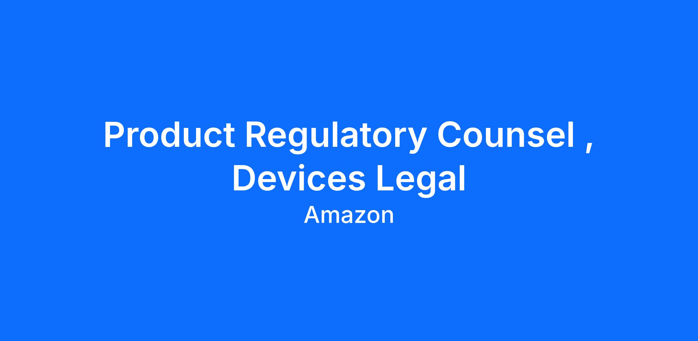 Join our dynamic legal team and be a pivotal part of consumer technologies that delight customers. We are looking for a talented product regulatory counsel to join Amazon’s Devices legal team. You will provide legal support for a wide array of consumer electronics products, including Ring, Blink and other flagship-branded devices. In this role, you will counsel senior business clients on strategic initiatives and key legal issues throughout the life cycle of our products. These include product compliance, safety, sustainability, and other regulatory requirements.