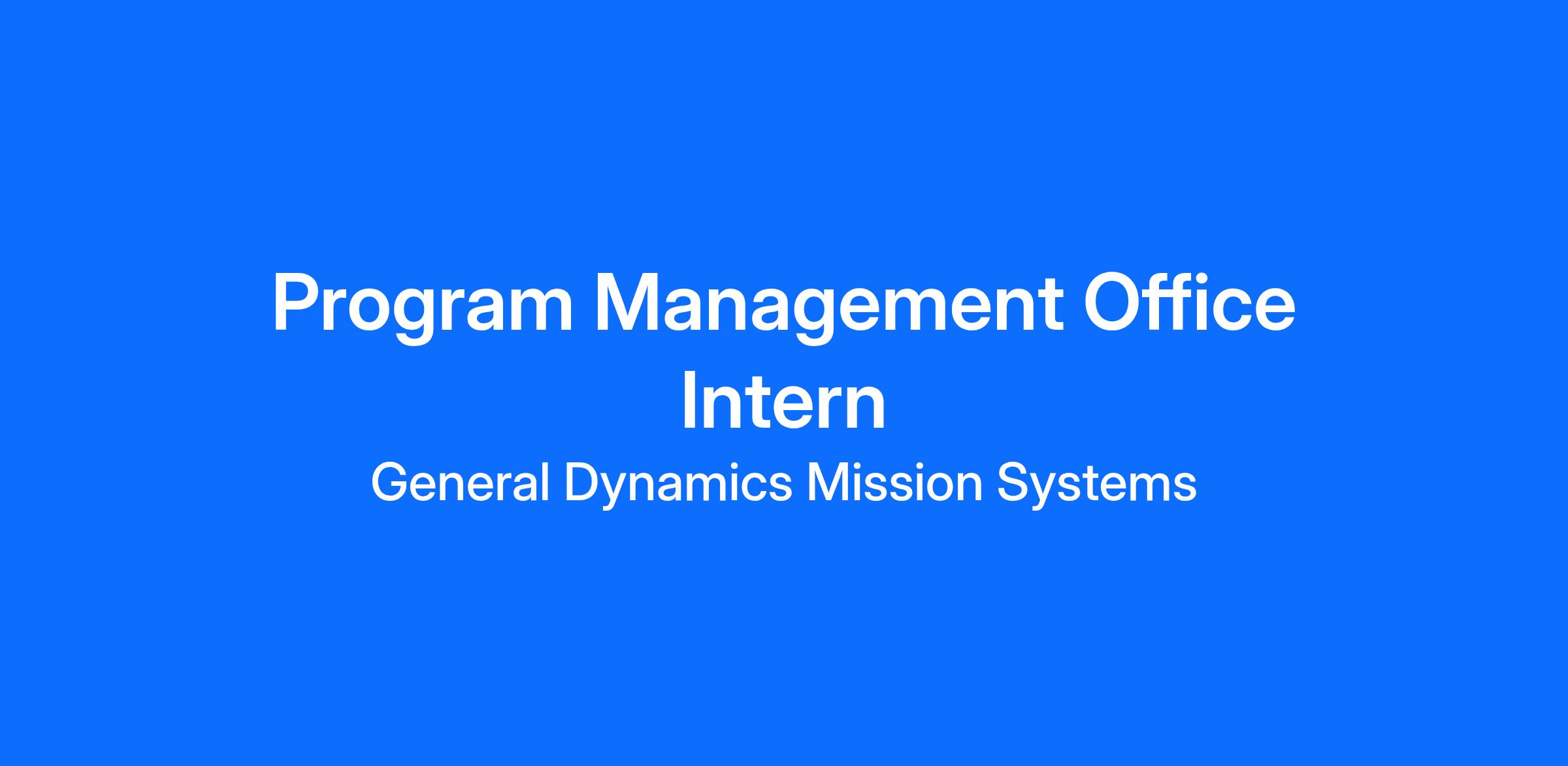 General Dynamics Mission Systems has an immediate opening for a Program Management Office Intern to join our team. The position provides an opportunity to enhance the performance and profitability of an organization that supports some of our nation's fundamental defense services. The selected candidate will work with collaborative teams to execute all aspects of program management including financial, contractual, cost and schedule analysis, risk and opportunity management, and internal and external performance reporting.