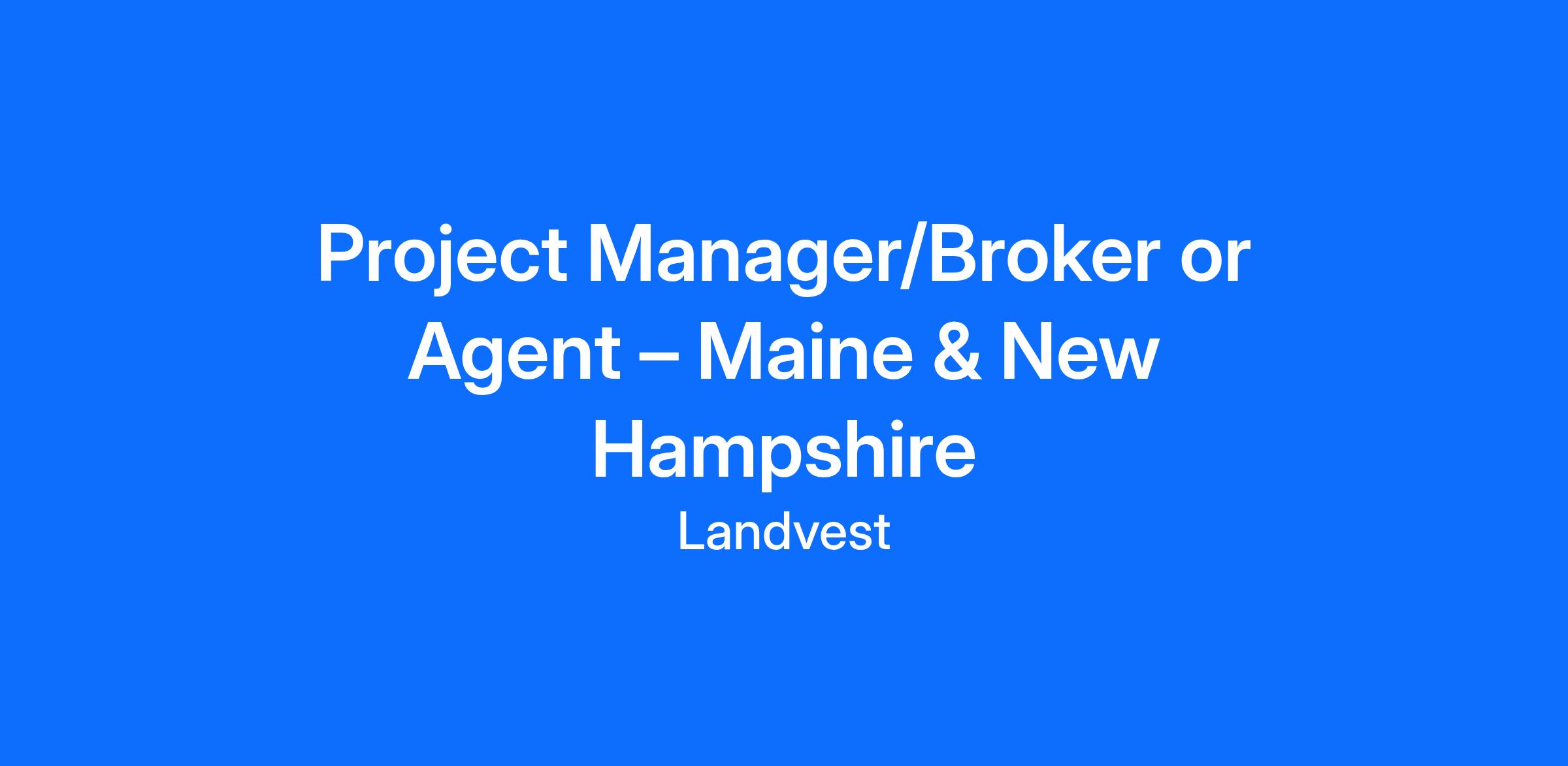 LandVest is seeking a qualified and motivated Project Manager/Broker/Agent to support our Land Investments team in Maine and New Hampshire. This client-facing role leads the marketing and brokerage of resource and recreational properties and manages assignments from onboarding through closing. The Project Manager/Broker/Agent partners closely with LandVest’s in-house specialists and external advisors to deliver a high-touch client experience while building regional relationships that drive new opportunities.