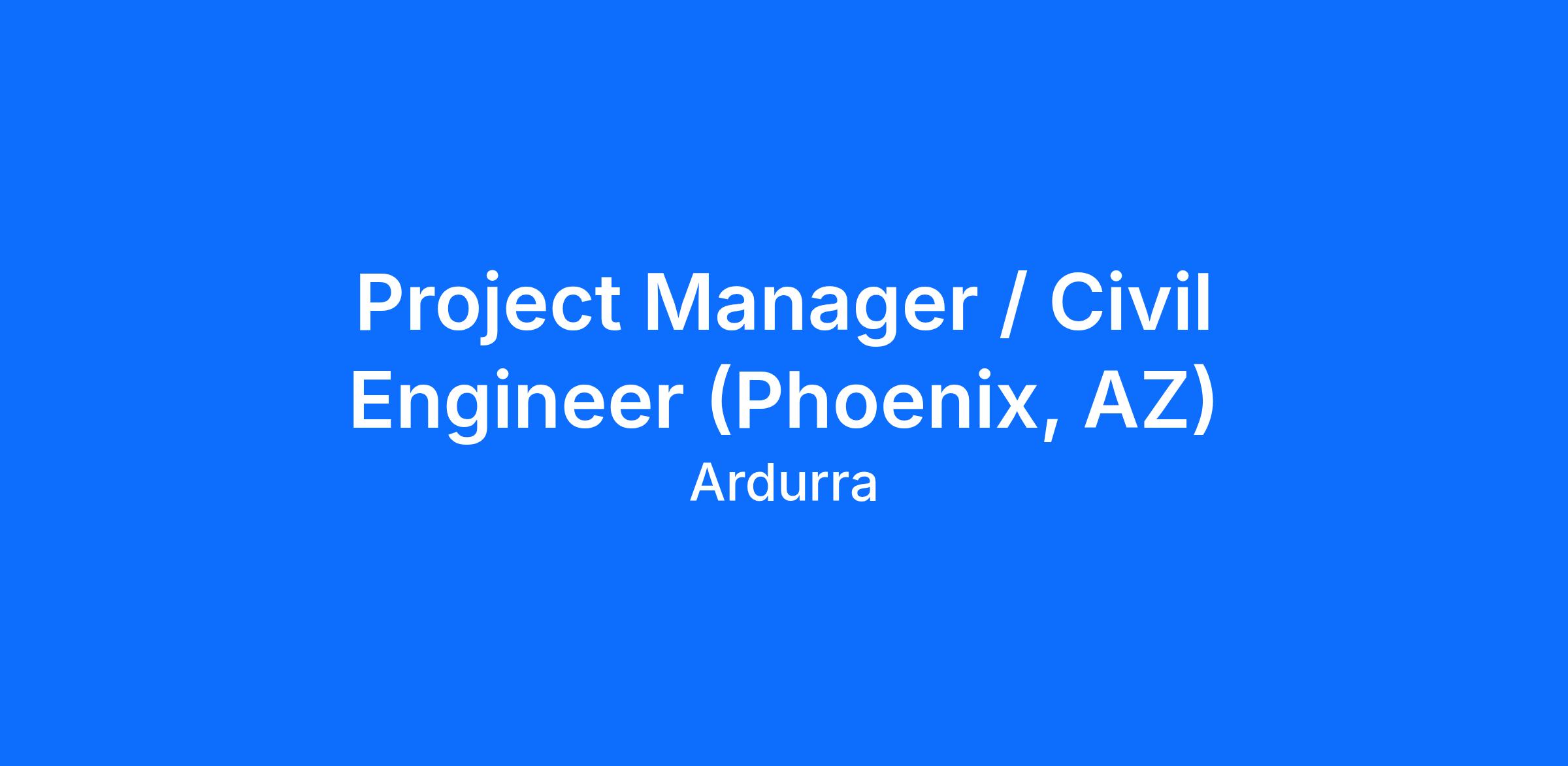 Ardurra is currently hiring a Project Manager/Civil Engineer to join our team in Phoenix, AZ!