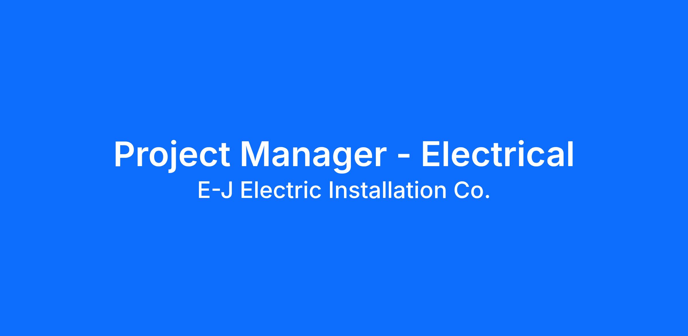 Position Summary: We are seeking a skilled and experienced Electrical Project Manager to join our team. The ideal candidate will oversee and coordinate projects, ensuring they are completed on time, within budget, and in compliance with E-J's safety regulations and quality standards. Responsibilities include planning, monitoring progress, and providing updates to stakeholders, clients, and team members. As a Project Manager at E-J, you will collaborate with diverse teams, communicate effectively with clients, subcontractors, and vendors, and play a key role in delivering successful electrical projects for our valued clients.