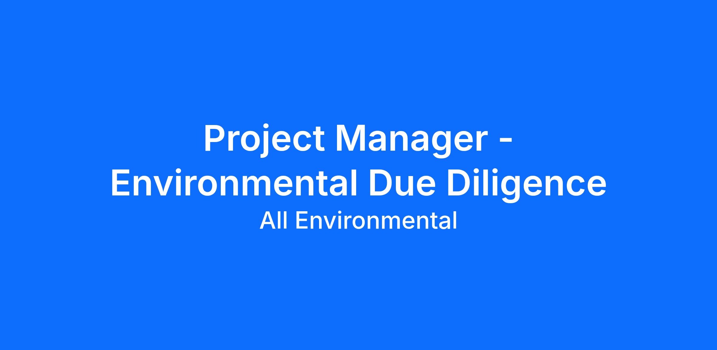 POSITION: Project Manager – Environmental Due Diligence