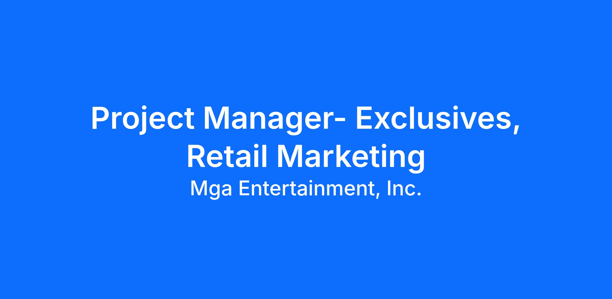 Mission: Retail-exclusive products are where brand storytelling meets real-world execution. They are highly visible, fast-moving, and central to how MGA builds strong partnerships with retailers and excitement with fans. The Exclusives Project Manager will be the execution owner behind these programs. Your primary focus will be leading a high-volume pipeline of retailer-specific product and packaging changes, alongside select end-to-end exclusive programs that require deeper coordination. You will bring clarity, momentum, and accountability to complex workflows, helping great ideas become shelf-ready products.