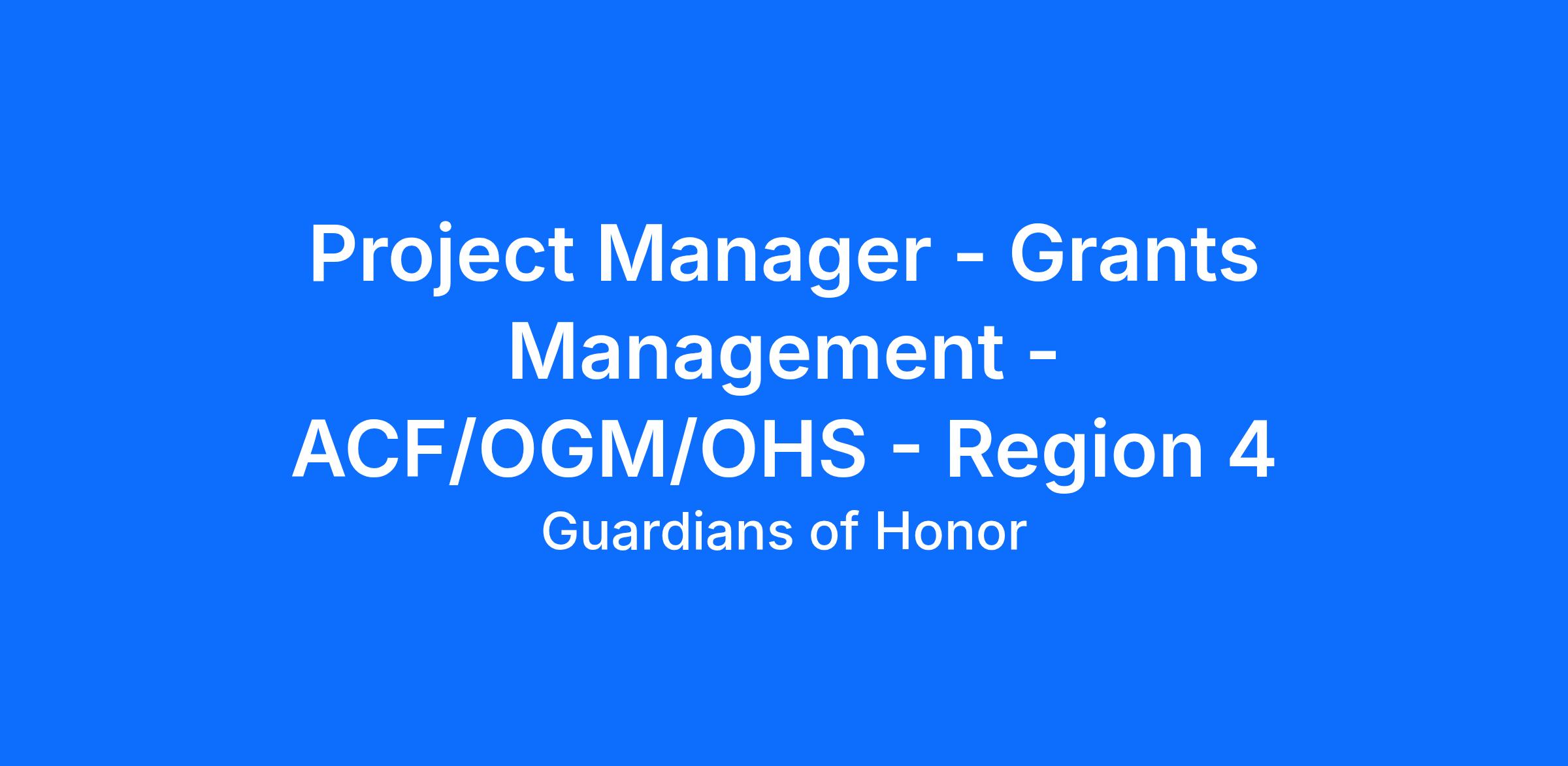 Project Manager - Grants Management - ACF/OGM/OHS - Region 4