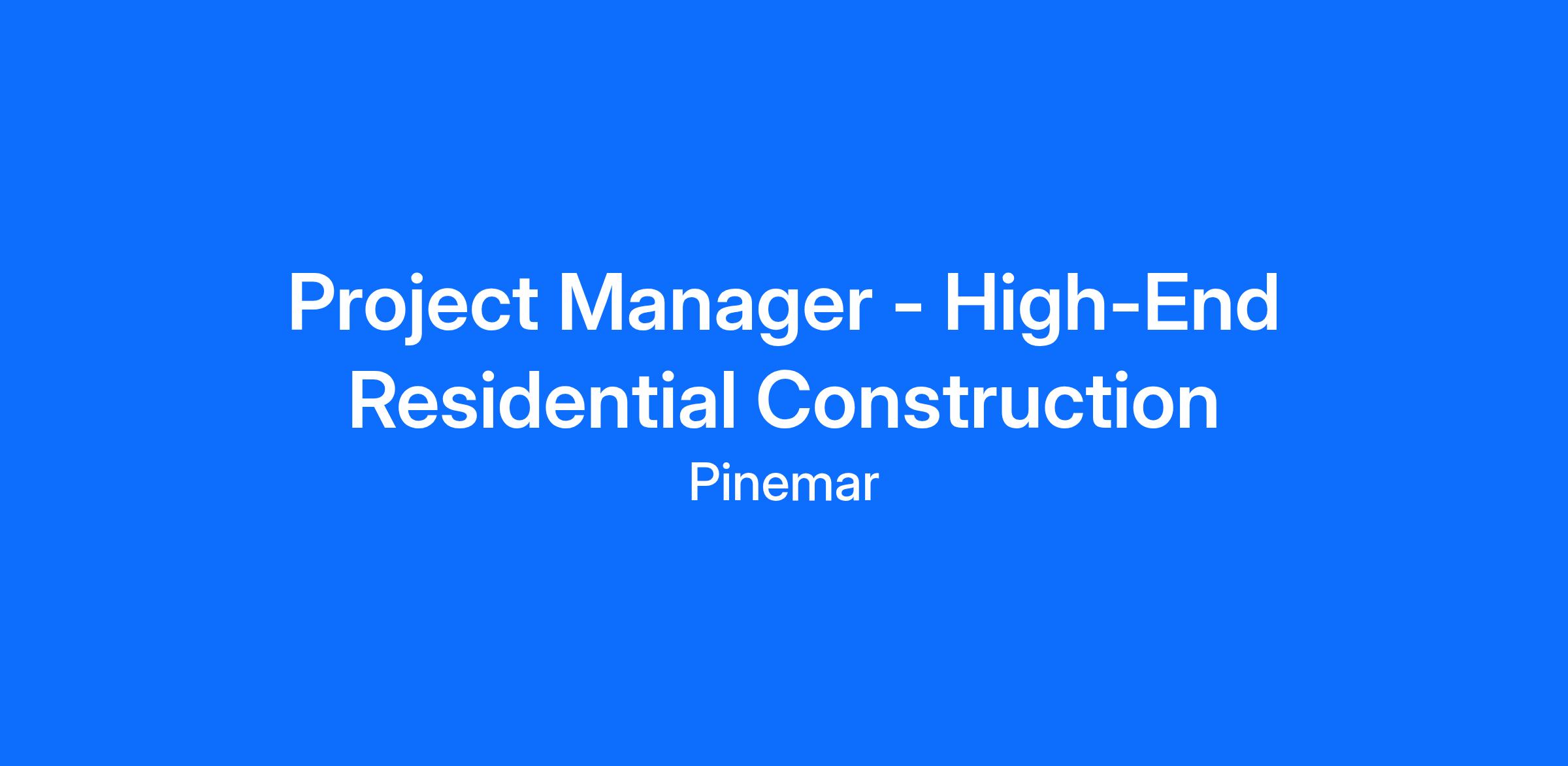 Project Manager - High-End Residential Construction