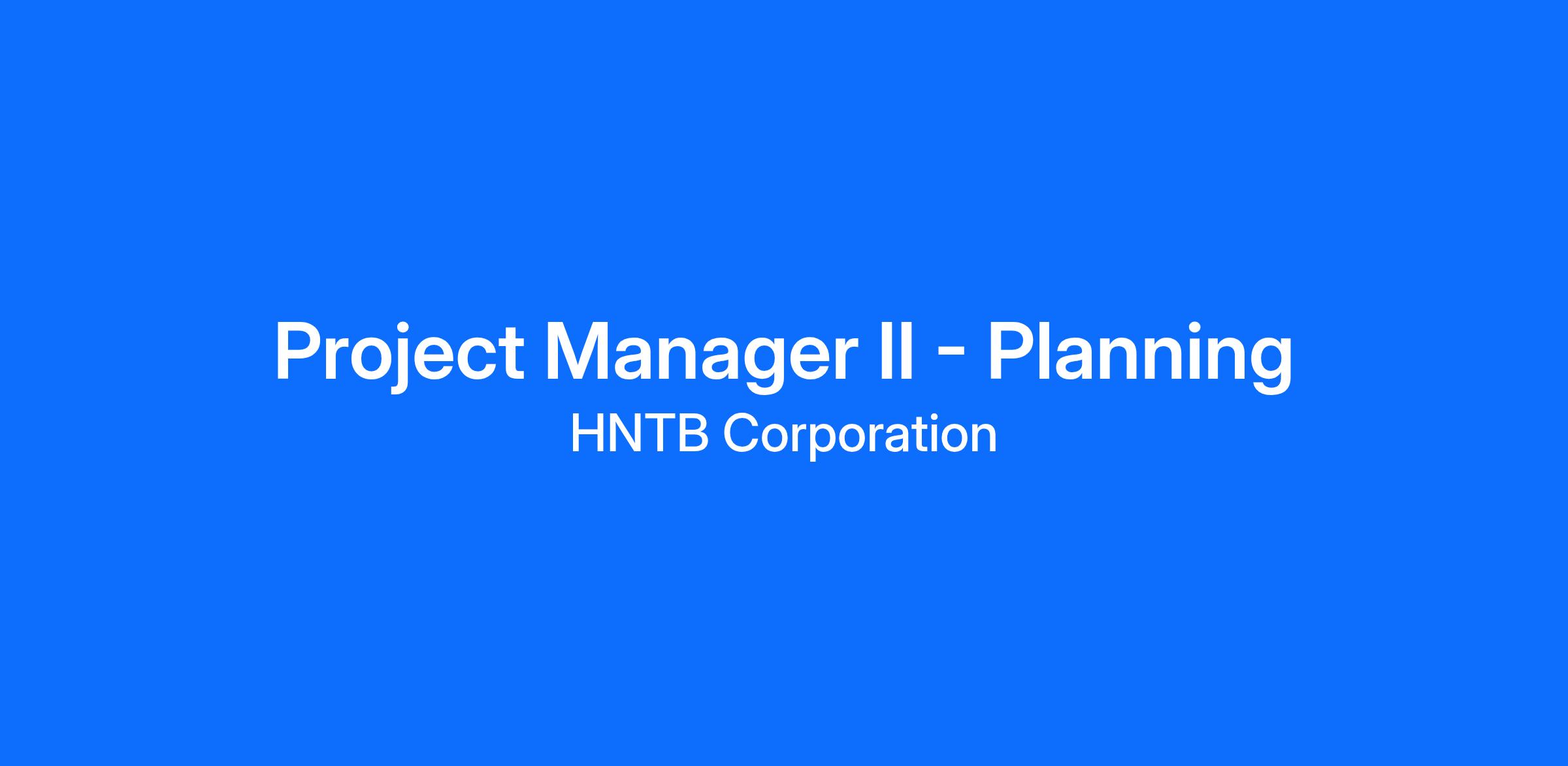This opportunity entails being responsible for managing assigned project(s) throughout their full lifecycle including developing the scope and technical sections of proposal and procurement documents to participating in contract negotiations and overseeing the delivery of the project plan to successfully accomplish HNTB’s 4 for 4 performance: delivery of quality work, on time, on budget and to the client’s satisfaction on every project. This position proactively manages the budget, schedule, technical requirements, contractual obligations, and client communications in support of the project’s objectives. The Project Manager II – Planning is typically responsible for management of project team(s) for one or more strategic (<$1M) or mini-mega ($1M to <$5M) projects, or may lead and/or work as a discipline lead on a mega ($5M to < $25M) project management team.