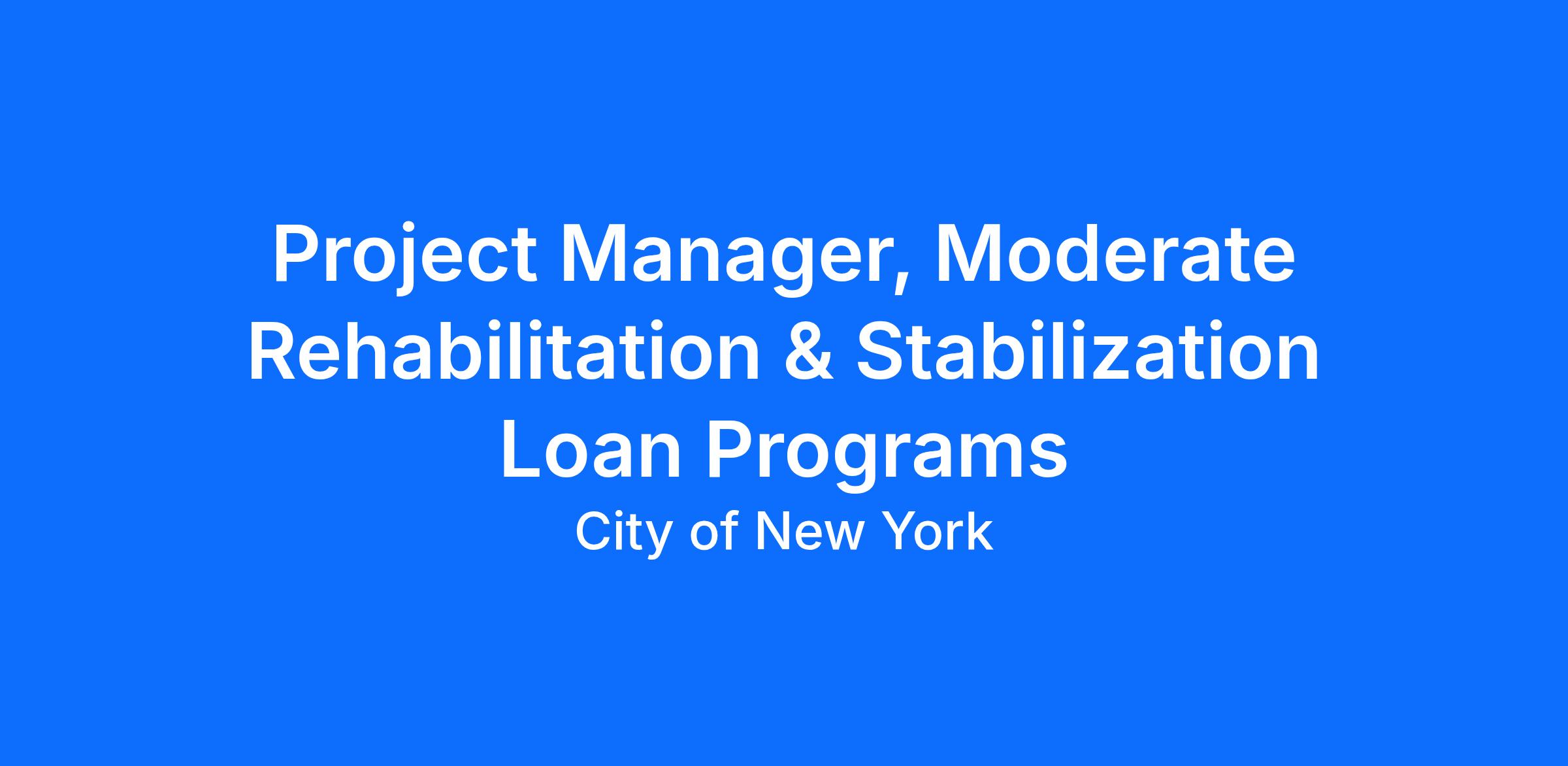 The Division of Preservation Finance seeks a Project Manager for Moderate Rehabilitation and Stabilization Loan Programs. The unit develops plans, strategies, and tools for effective affordable housing preservation initiatives, as well as analyzes, negotiates, and executes on financial transactions to preserve the physical and operational integrity of existing affordable housing developments. The unit provides rehabilitation loans to multifamily affordable housing developments that cannot leverage private financing and only require financing for the replacement of major building systems to improve living conditions and preserve safe affordable housing for low- and moderate-income households in New York City.