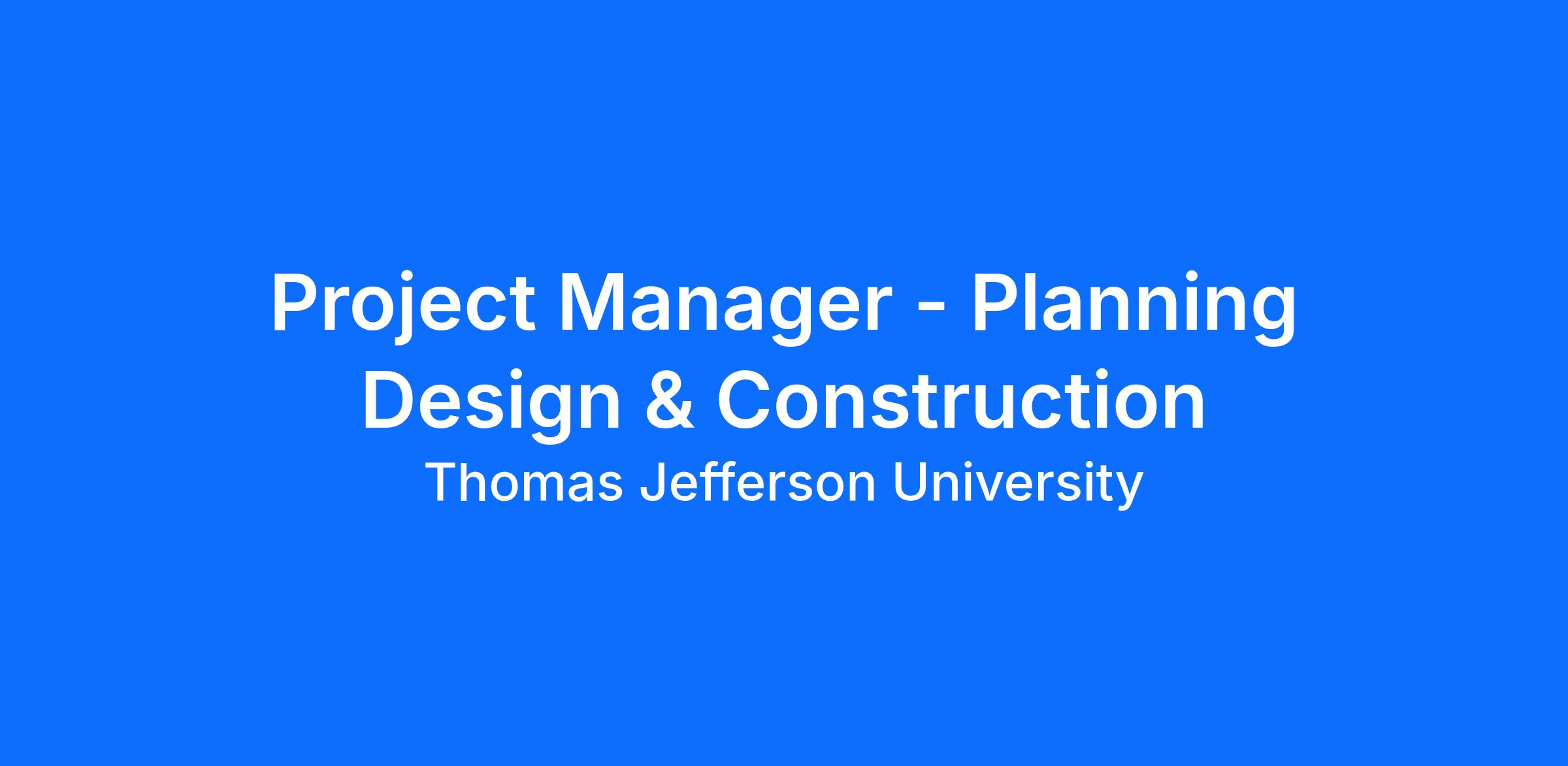 Responsible for the management of assigned capital projects, including the management of all planning, design, and construction activities and the execution of all associated project management activities necessary for successful project completions. Projects include those in the capital programs of Thomas Jefferson University and Thomas Jefferson University Hospital system.Job Description