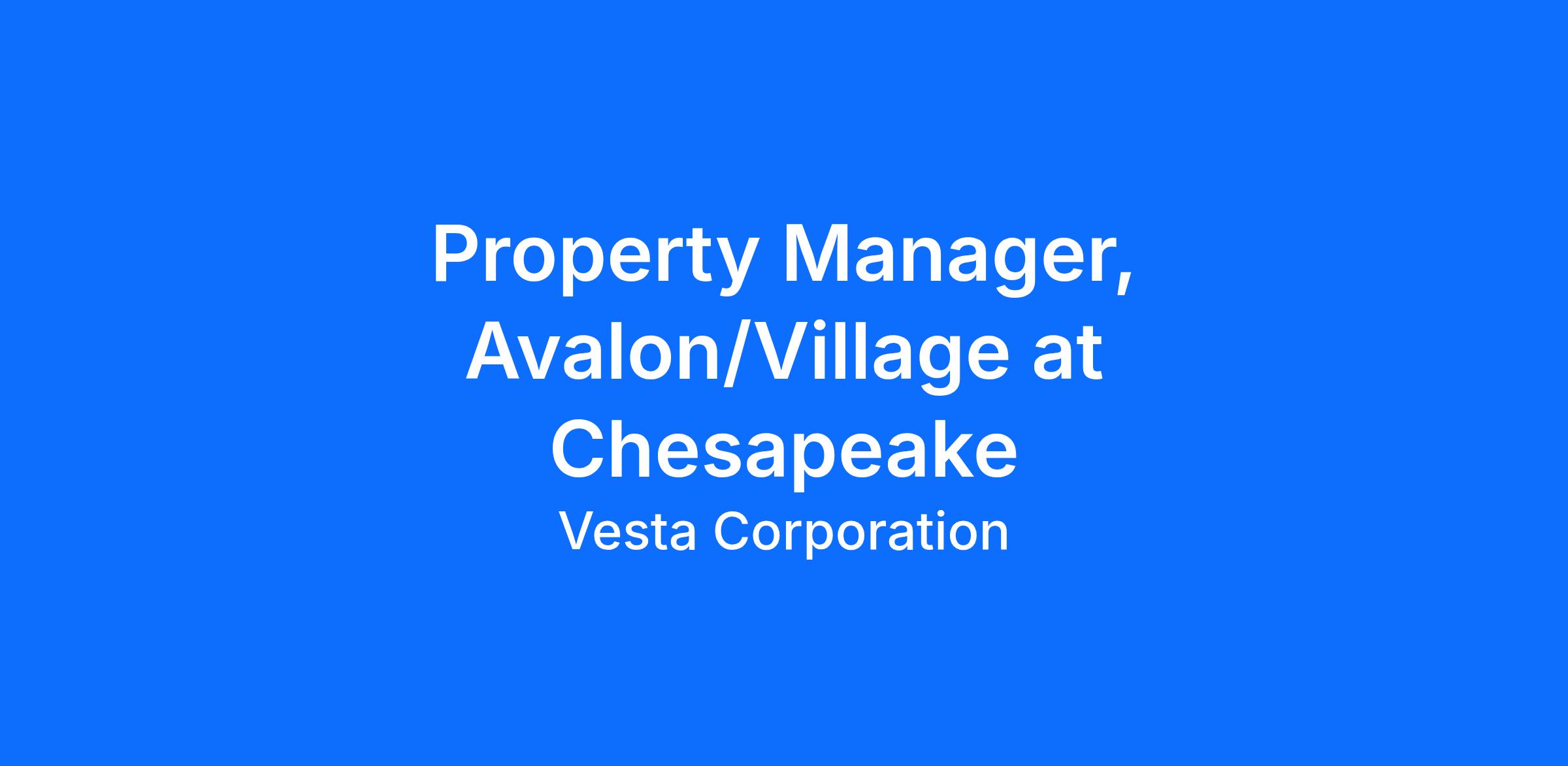 Vesta Management is seeking to hire an affordable housing experienced, results driven, customer service focused Property Manager to oversee operations at Avalon/Village at Chesapeake in Washington, DC. We're looking for a hands-on leader who is familiar with affordable housing programs such as LIHTC and Section 8, takes pride in operational excellence, and genuinely cares about creating a positive experience for our residents. Join our team and be a part of Vesta’s success story!