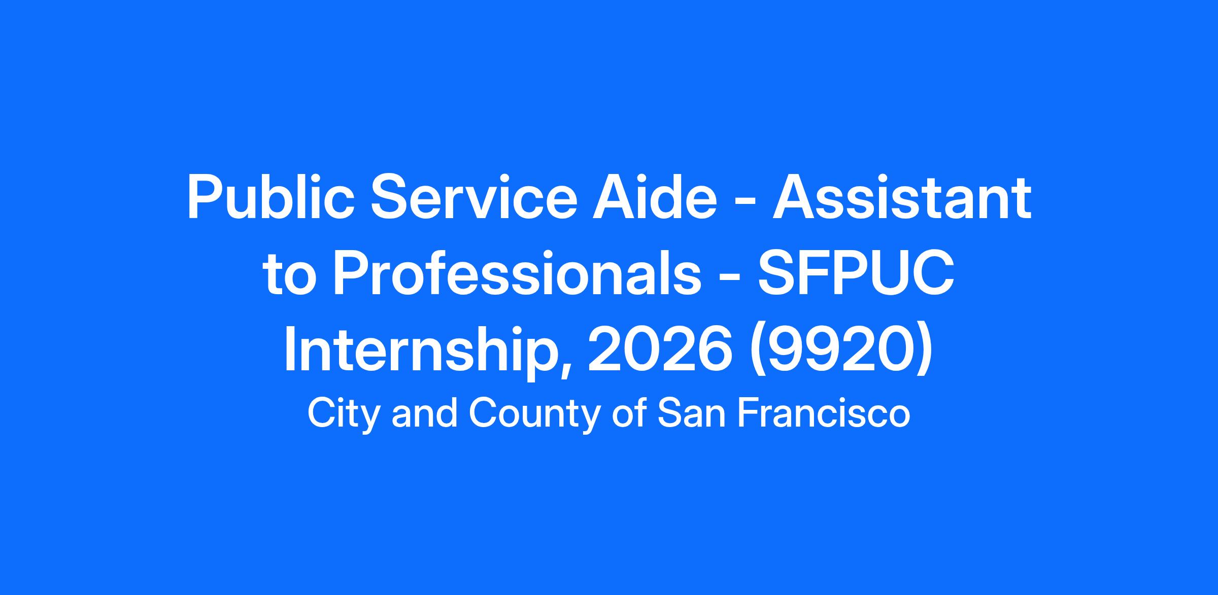 Public Service Aides will be reporting to various SFPUC locations depending on assignment: