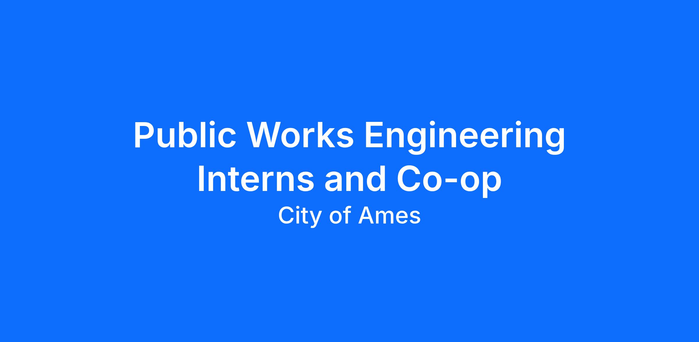 The Engineering Division of the City of Ames Public Works Department is seeking motivated and creative students for a variety of internship and co-op positions! These positions provide an excellent opportunity for practical experience in the Civil Engineering, Construction Engineering, Environmental Engineering/Science, Forestry, Landscape Architectural or related fields.