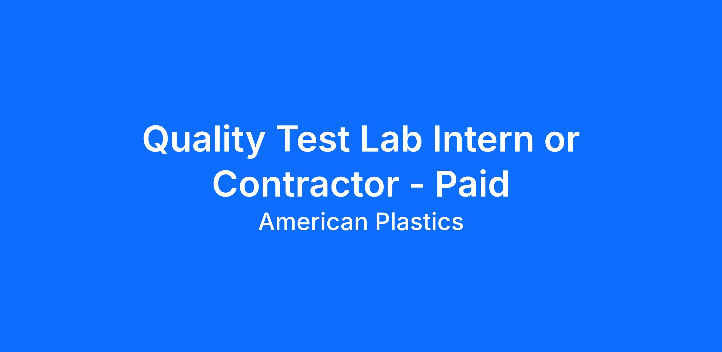 American Plastics is a leading designer and manufacturer of innovative plastic-injection molded products for the household & garage storage and commercial cleaning end-markets. We are searching for a Test Lab Technician (Contract or Intern) for our Innovation Center in Findlay, OH. This position will report to the Test Engineer.