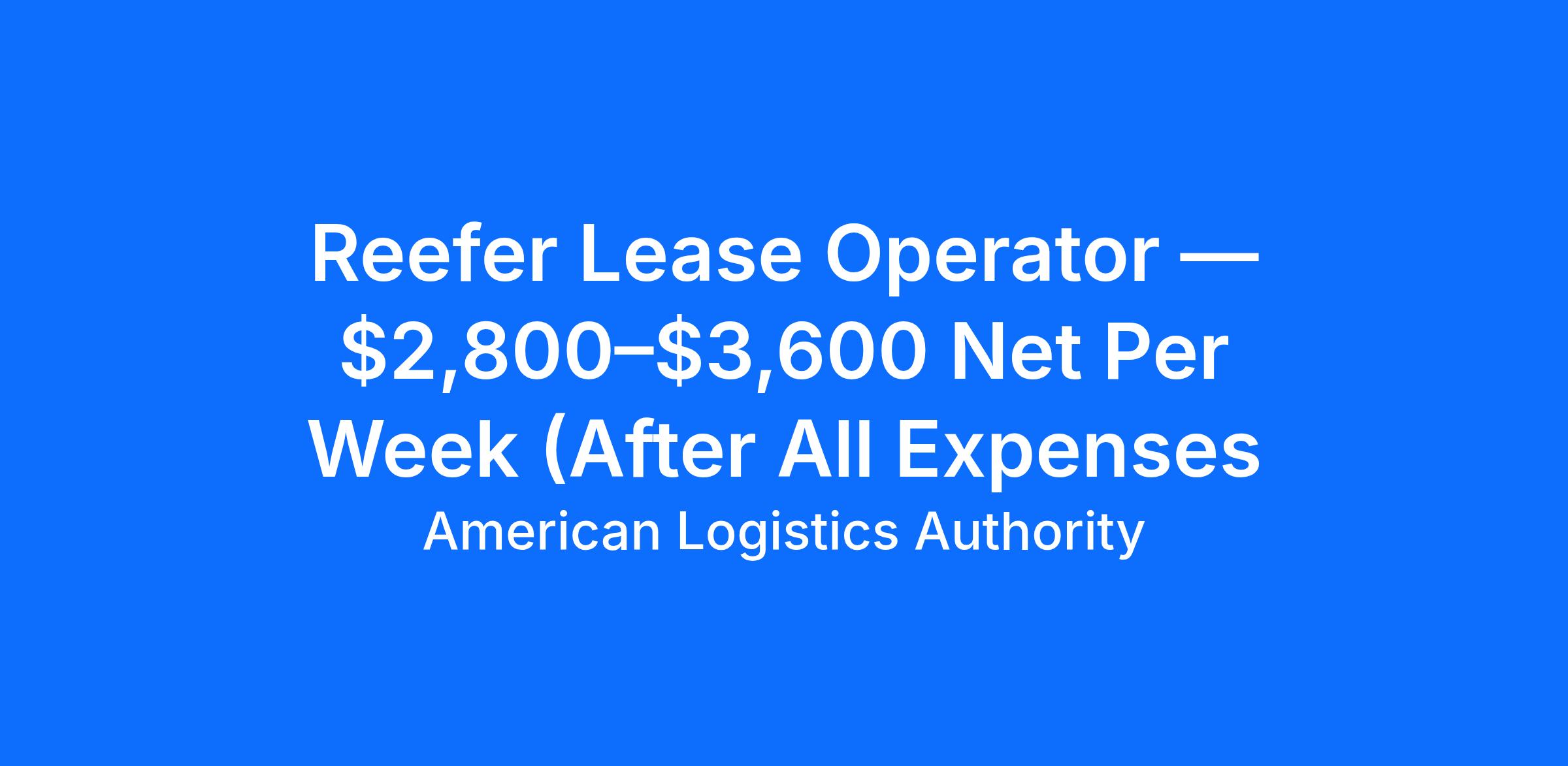 REEFER LEASE OPERATOR — $2,800–$3,600 NET PER WEEK (AFTER ALL EXPENSES)