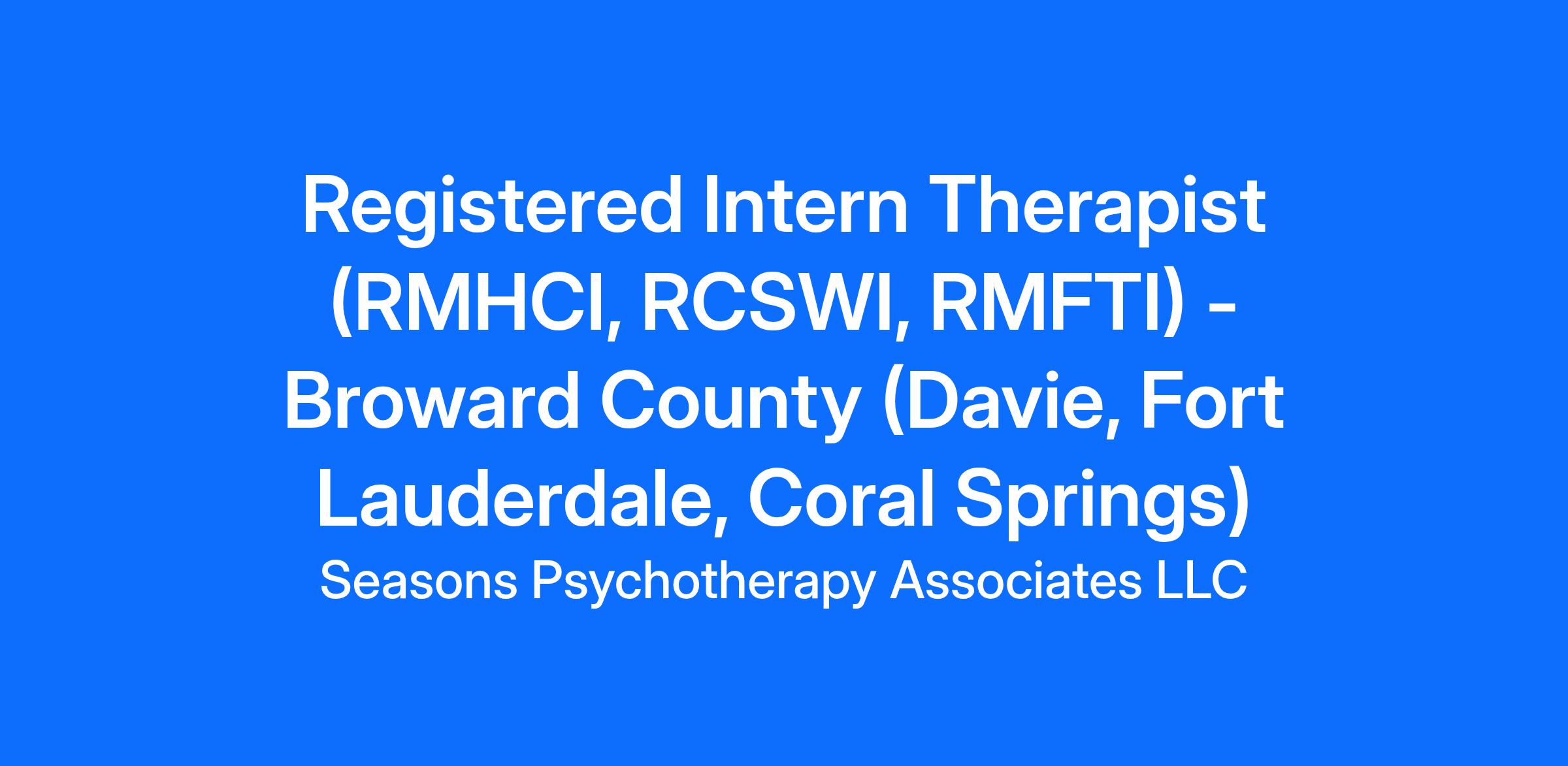 Seasons Psychotherapy Associates — a supportive outpatient group practice — is hiring Registered Intern Therapists (RCSWI, RMHCI, RMFTI) for our Broward County offices in Davie, Fort Lauderdale, and Coral Springs. This is a true clinical home: stable referrals, free qualified supervision, real colleagues, intentional professional growth, and competitive pay in a structured, growth-oriented environment.