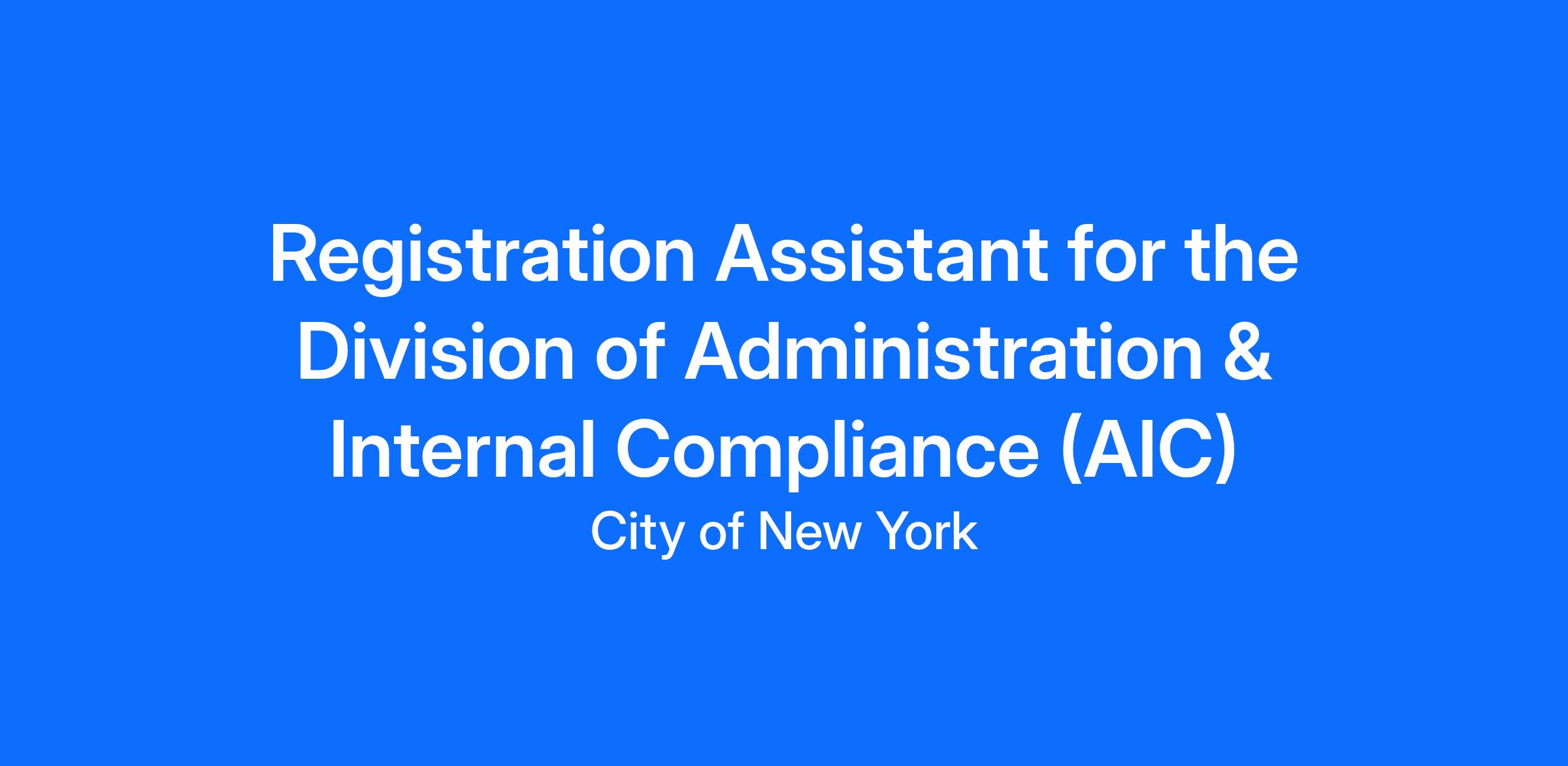 Under direct supervision of the Director of Registration Assistance Unit in the Division of Administration and Internal Compliance (AIC) in the Office of Enforcement and Neighborhood Services (OENS), the division would like to hire a Registration Assistant /Community Associate.