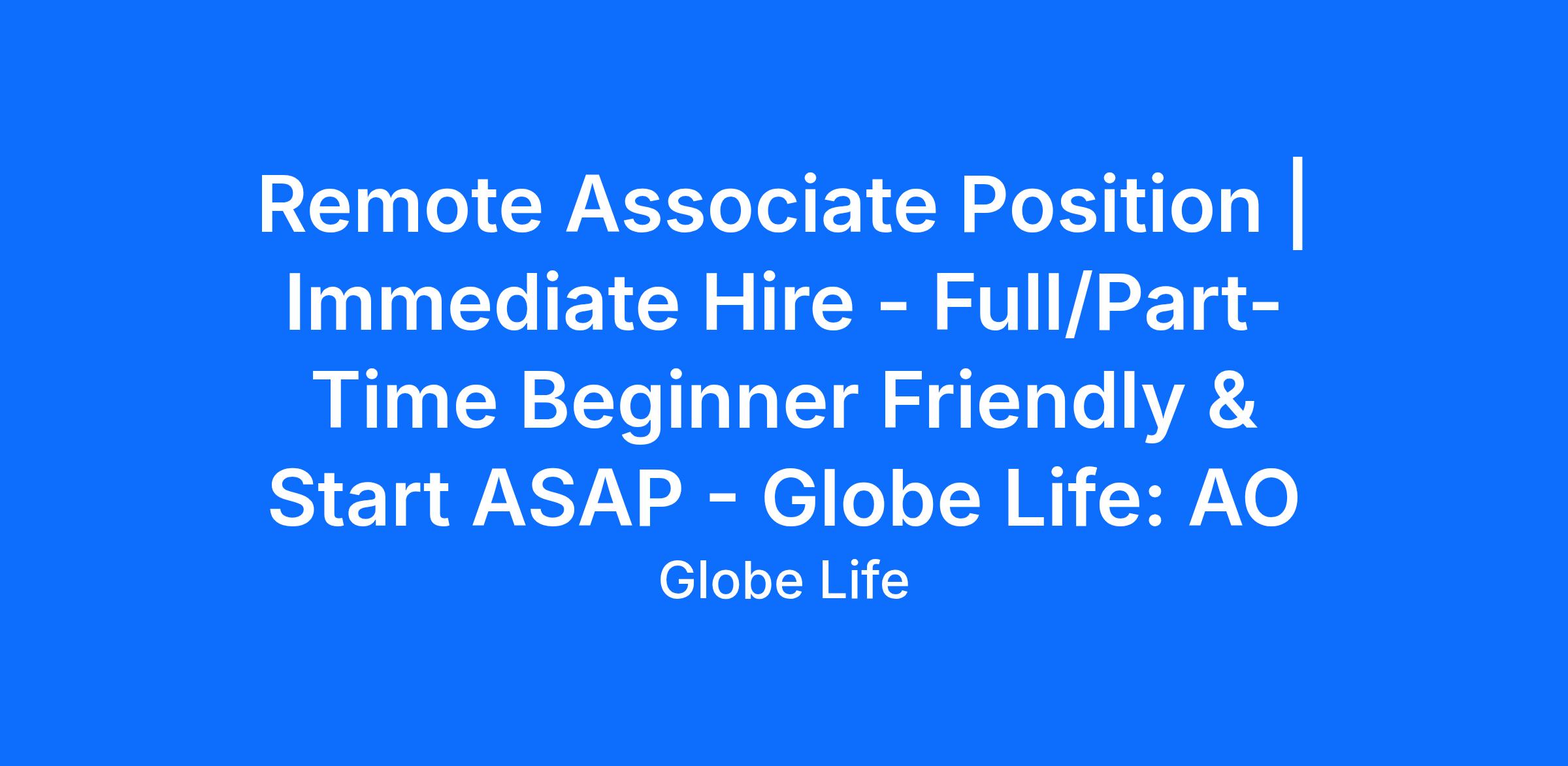 Globe Life AO is rapidly expanding, and we’re looking for motivated individuals to join our team. This is an excellent opportunity for anyone seeking a fresh start, career change, or flexible remote work. No prior experience is required—we provide full training and support.