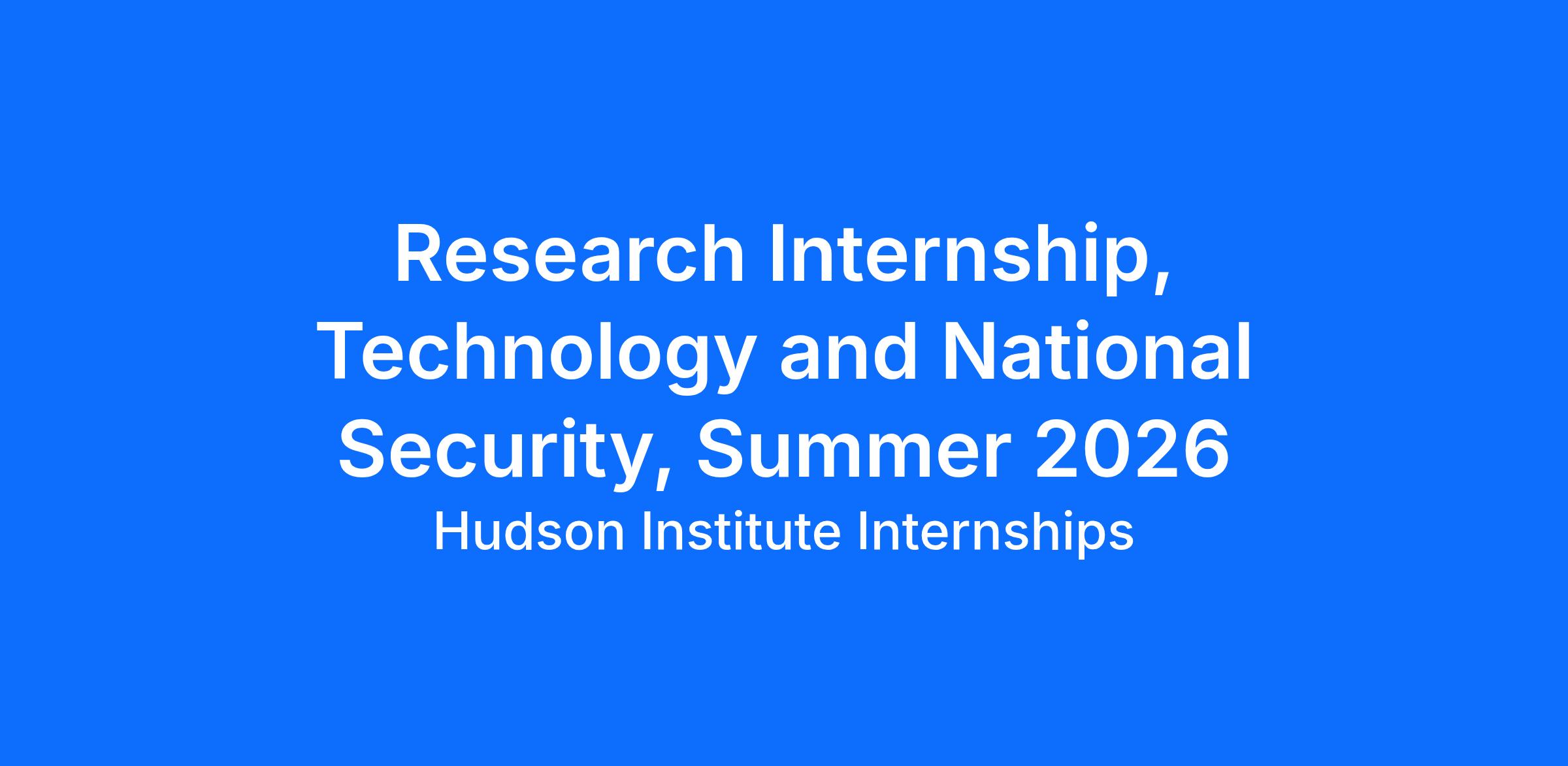 Hudson Institute is seeking interns to looking to gain research experience in U.S. national security industrial base, strategic technologies and resources, and American grand strategy. This intern(s) will support our experts' work to ensure American preparedness and competitiveness in an increasingly unstable geopolitical environment. In addition to being exposed to critical issues in the aforementioned subject areas, interns will spend significant time discussing these issues with their expert(s). Those who work onsite will also have the opportunity to assist with, and attend, Hudson Institute public events, as well as intern-specific events featuring Hudson scholars and experts across Washington, DC.