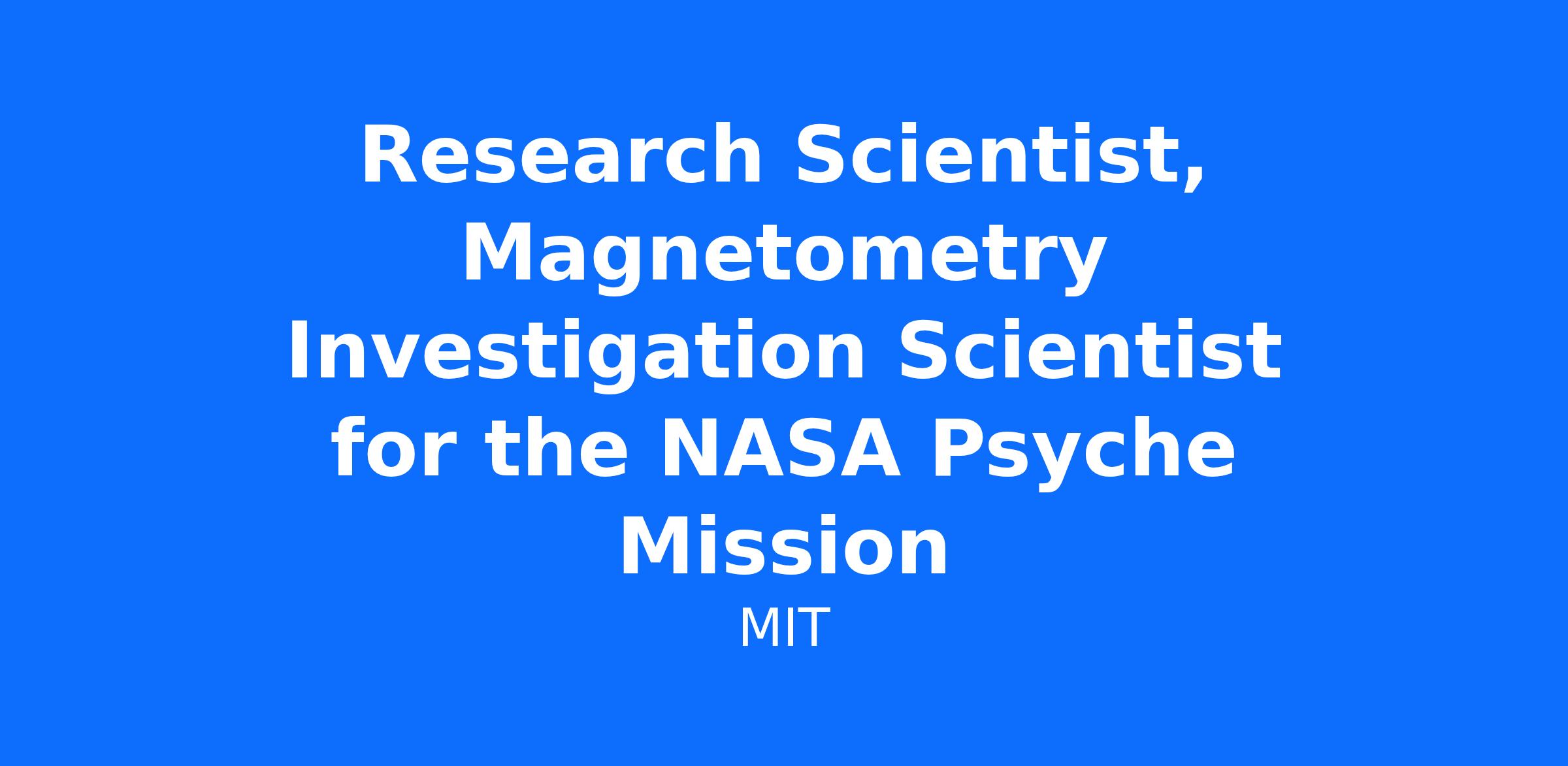 RESEARCH SCIENTIST, MAGNETOMETRY INVESTIGATION SCIENTIST FOR THE NASA PSYCHE MISSION, Earth, Atmospheric, and Planetary Sciences, to perform feasibility studies of detecting Psyche’s remanent magnetization from orbit including magnetosphere reconstruction, dipole estimation, spherical harmonic analyses and development of predictive tools for solar wind conditions; participate in data processing and the development of the ground data system for the Psyche Magnetometer; and join the Psyche science team, under the direction of the Magnetometry Investigation Lead, Professor Benjamin Weiss. The Psyche mission is NASA’s Discovery mission to explore the largest metal-rich body in the solar system, asteroid (16) Psyche: https://psyche.ssl.berkeley.edu/.
