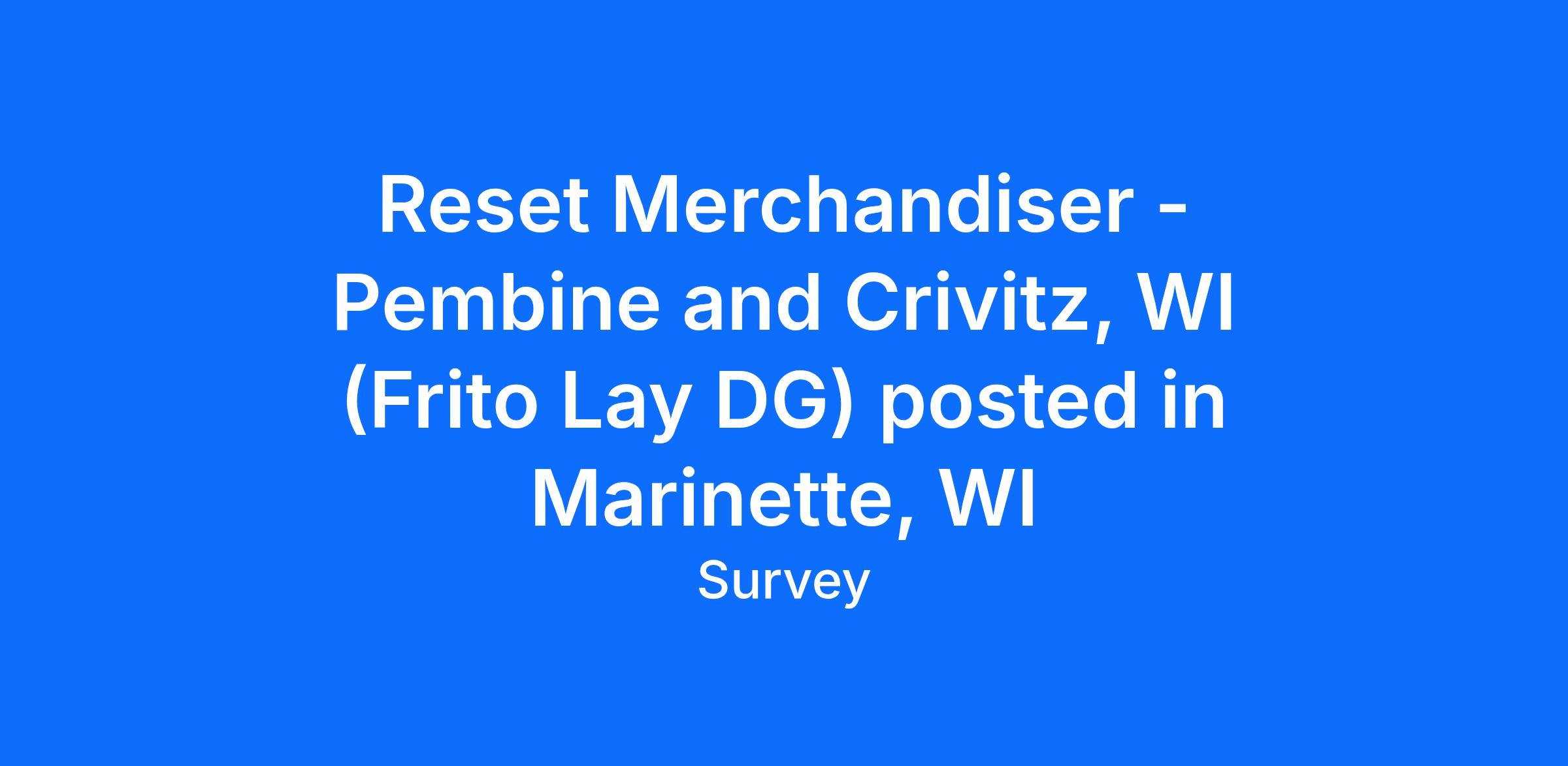 Survey Merchandiser is seeking independent contractors with reset/POG experience to work as Reset Merchandisers in Pembine, WI paying $22/hr.