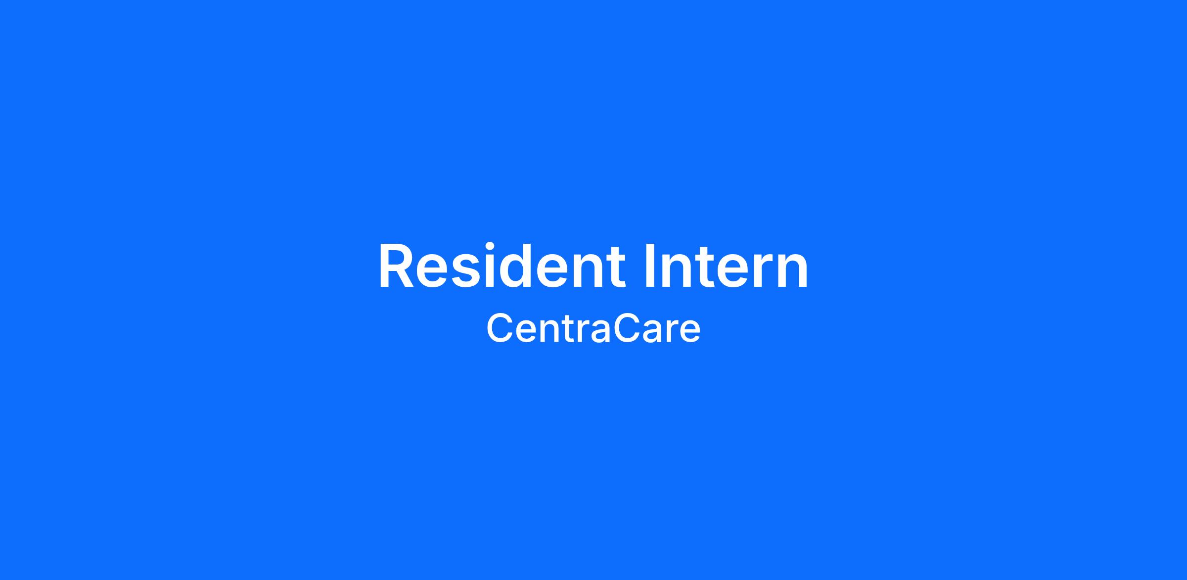 DescriptionFind your purpose as Resident Intern at CentraCare. This practice provides an opportunity to apply the theoretical foundations learned in the classroom to practical experiences in the operation of one healthcare organization. The candidate will witness the CentraCare’s mission and observe the application of organizational strategy, structure, systems, staff and style that work together to accomplish that mission.